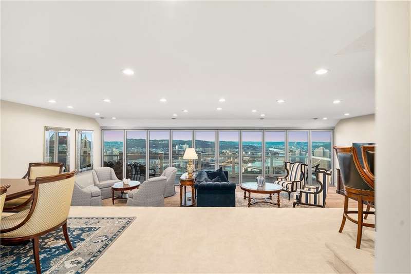 Experience luxury living in this stunning Mt. Washington condominium offering panoramic views of Pittsburgh's skyline, rivers, and stadiums. This spacious home features a sunken living room with floor-to-ceiling windows and balcony access, perfect for soaking in the cityscape. The open dining area flows into a fully equipped, step-saver kitchen. With three generously sized bedrooms?including a captive room ideal for a home office?and a luxurious primary suite with spa-like ensuite and private balcony, comfort meets elegance throughout. Enjoy the convenience of second-level laundry and an oversized 3?4 car garage. Located just steps from the Incline, restaurants, and entertainment, this home offers a rare blend of peace, style, and city access. Wake up every day to million-dollar views and vacation-like living. Don't miss your chance to own this exceptional property on Grandview Avenue!