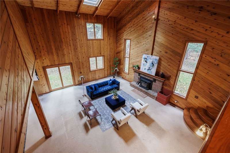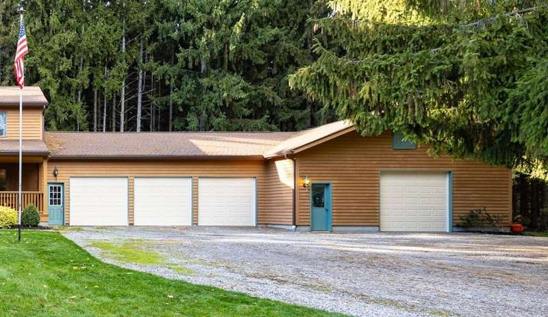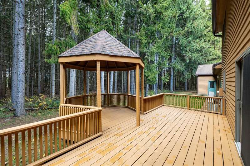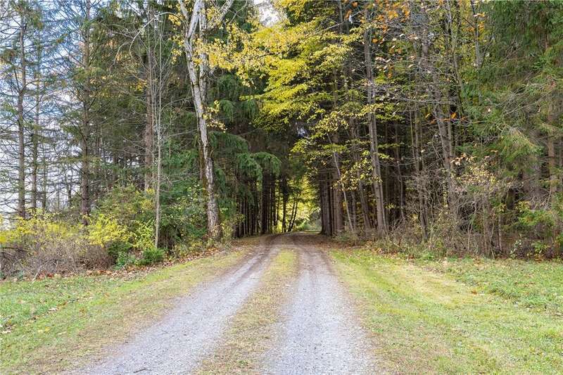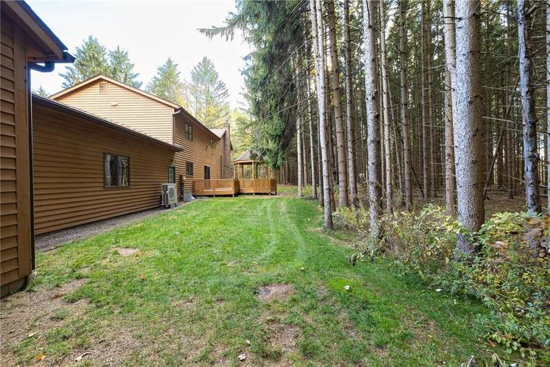 Wow! This is a gorgeous contemporary country home offering a private, wooded setting on 6 acres. As soon as you enter the single lane drive, you're enveloped by the natural surroundings and mature trees and you've left the rest of the world behind. At the end of the drive, this 3,300 square foot home awaits, with a welcoming, open front porch, a 3 car attached garage and a huge attached 2-level workshop that will provide any hobbyist or DIYer years of entertainment! Once inside, you'll love the warmth of this home. The centerpiece is the huge wooded great room which has soaring ceilings and skylights that keep the entire home bright. It has a brick mantel and a wood-burning stove, an open staircase leading to the loft, and windows galore...and opens to the updated, eat-in kitchen with built-ins, a breakfast bar, and easy access to the back porch and gazebo! There's so much more. A den/office. First floor laundry room. Primary bedroom suite/loft that has a balcony overlooking the yard. Three extra bedrooms upstairs (each with a mini-split AC unit). A storage room. Brand new garage doors. Baseboard heat throughout house with temperature controls in each room. Mini-split AC units in 3 upstairs bedrooms. Brand new heat pump in the basement that was partially installed and will convey with the house, so that could be set up at a later date by the Buyer to replace/enhance electric, if desired. H20 filtration system with a 380 gallon in-home tank that is pre-filtered and on-demand. Delayed negotiations will be in effect, with offers due November 12th at 11:30 pm.