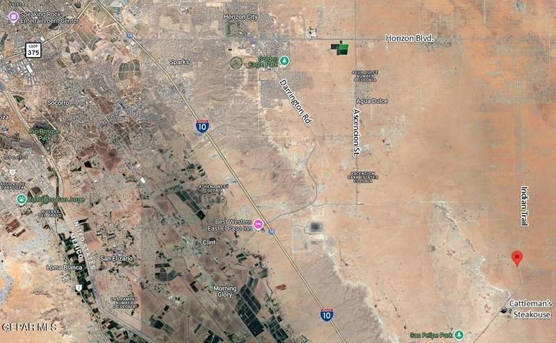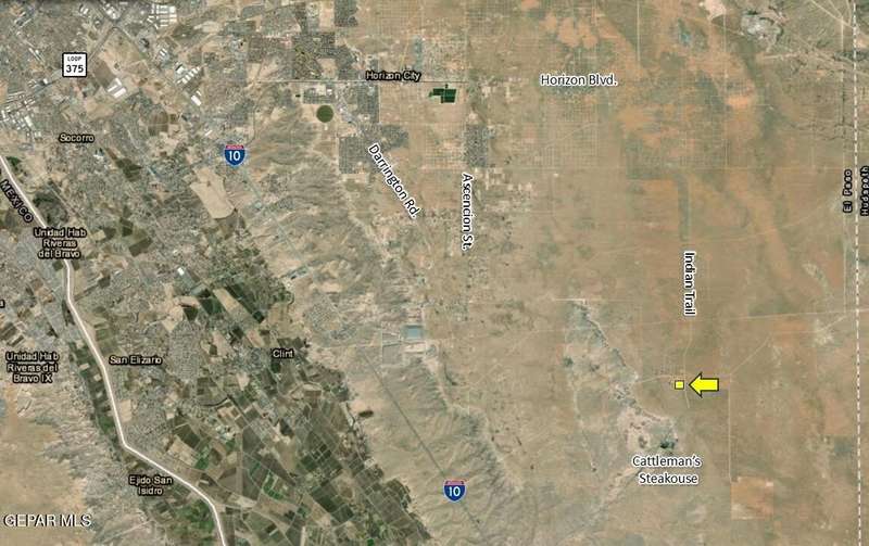Huge 6 acre lot with electricity at the line. Located on Indian Trail Rd. approximately 1 mile from Cattleman's Steakhouse. Can be accessed from Horizon Blvd. as well. Build your home or business on it or buy it as a smart buy-and-hold investment. Texas Veteran's financing may be available! Use the following Geo-coordinates to locate the land in any mapping software: 31.581619 , -106.062112.