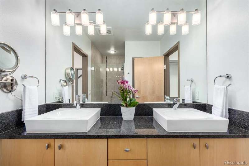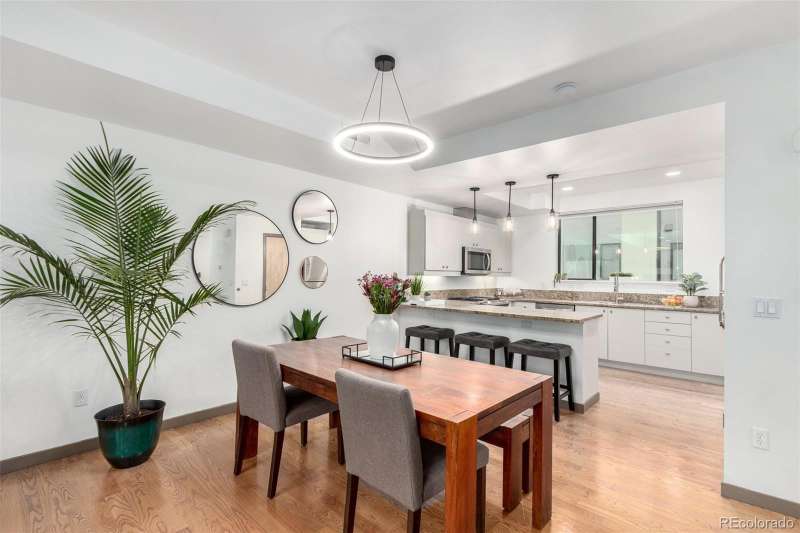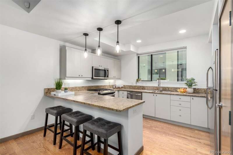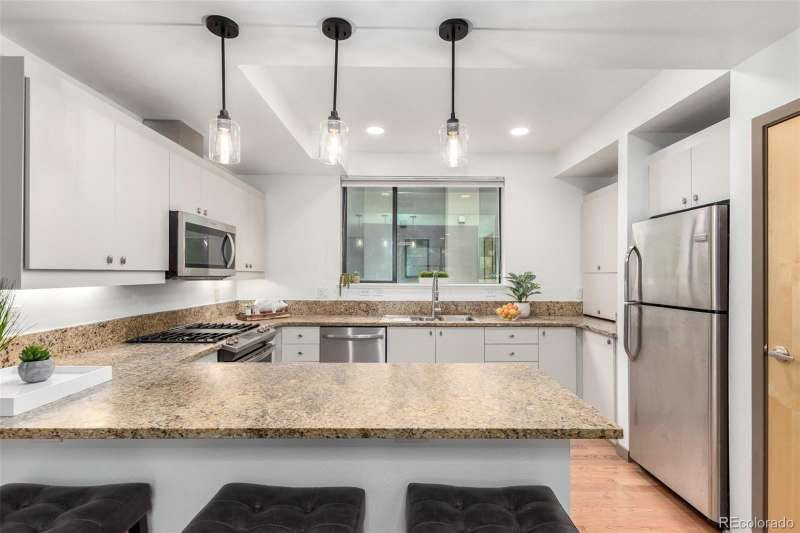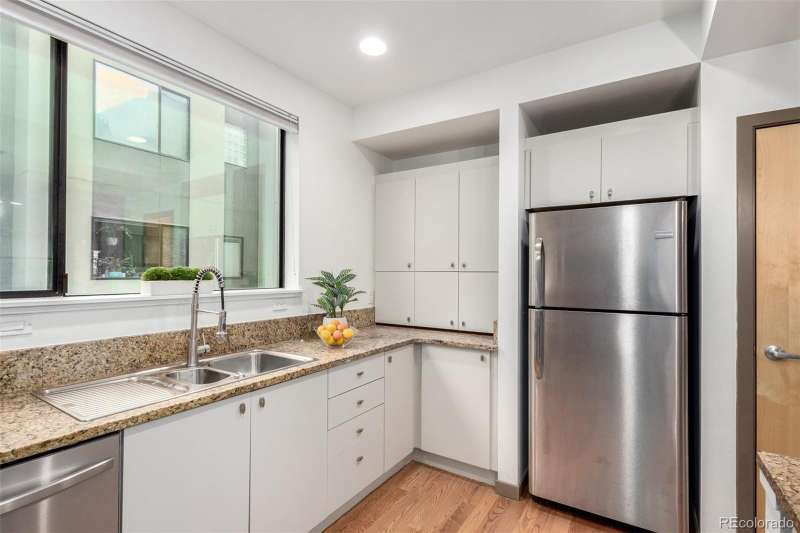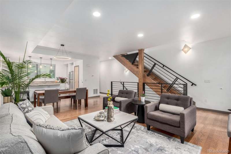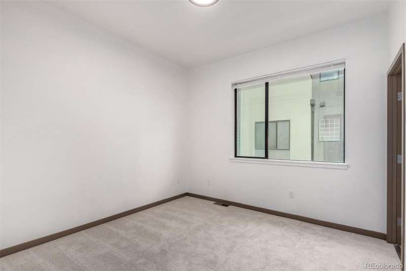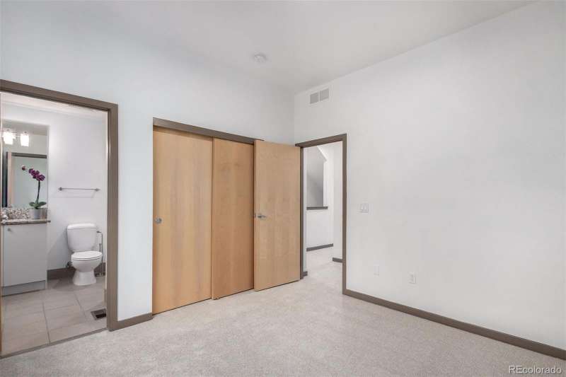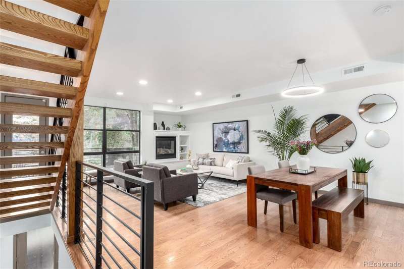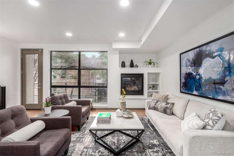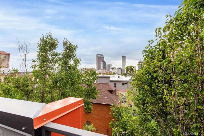 Fantastic unit at the 24th Street Townhomes- one of the 11 in this development. Located on a small pocket park, which provides a rare green urban buffer on a quiet block. Situated on the edge of downtown, RiNo, and Curtis Park this townhome offers a prime location to an urban lifestyle. The ground floor is perfect for a 3rd bedroom, office or home gym space complete with en-suite full bath. The 2nd living level provides an open floorplanwith two sides of windows, living & dining rooms, kitchen with white cabinets, stainless appliances, breakfast seating and slab granite counters. Additionally, there is a half bath and balcony facing the greenbelt with a natural gas line for a grill. The third level is the primary bedroom en-suite with a 4 piece bath, walk-in closet. Second bedroom with en-suite full bathroom as well. Make your way to the rooftop deck with views of downtown, and privacy perfect for sunny afternoon naps or evening cocktails. A 2 car garage with bib finishes off this beautiful residence.