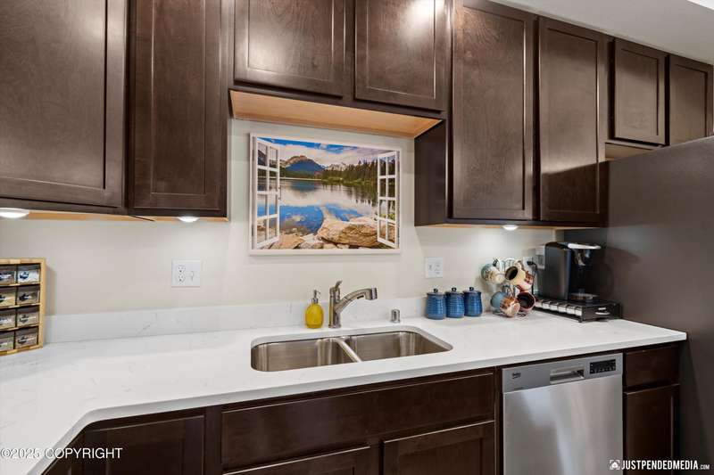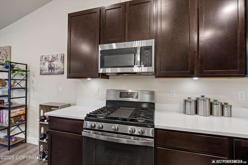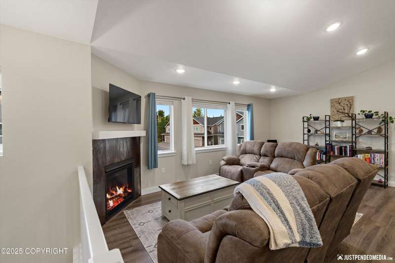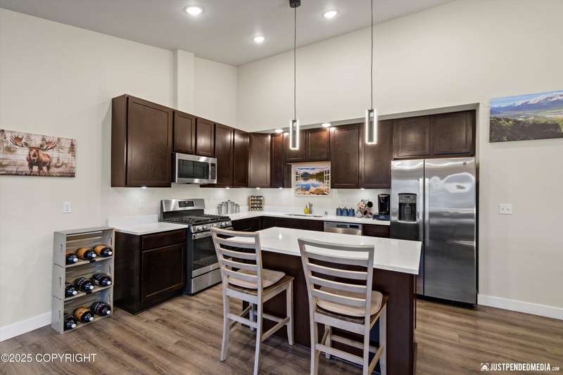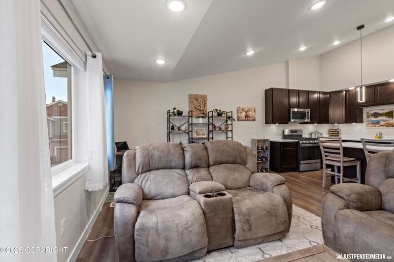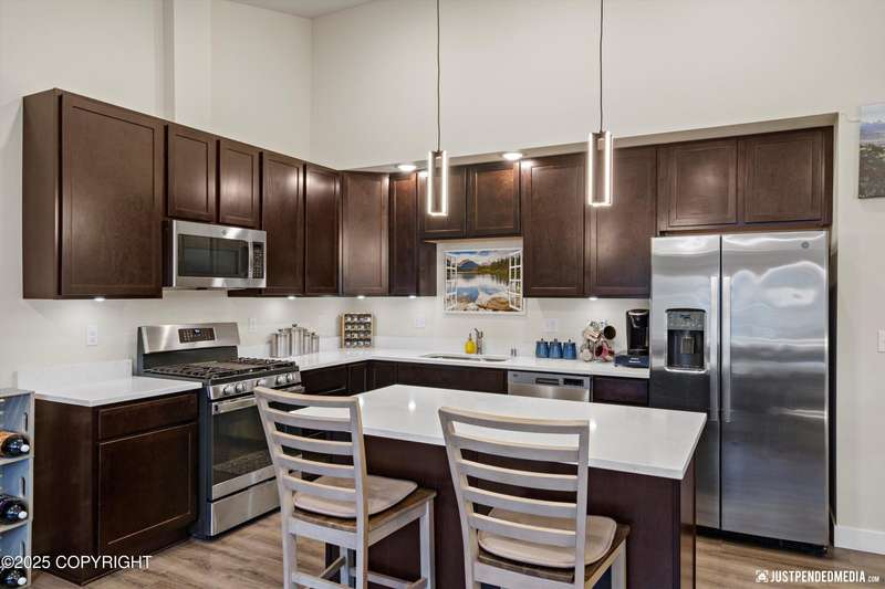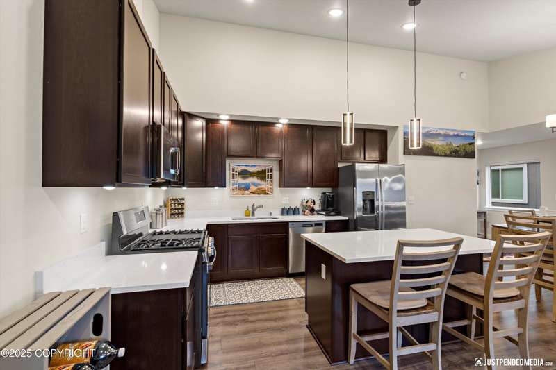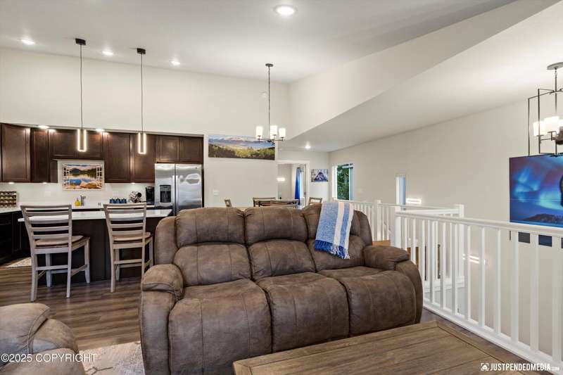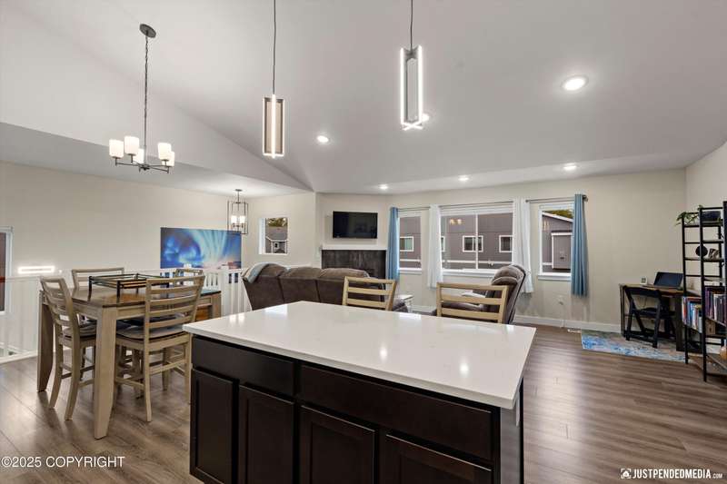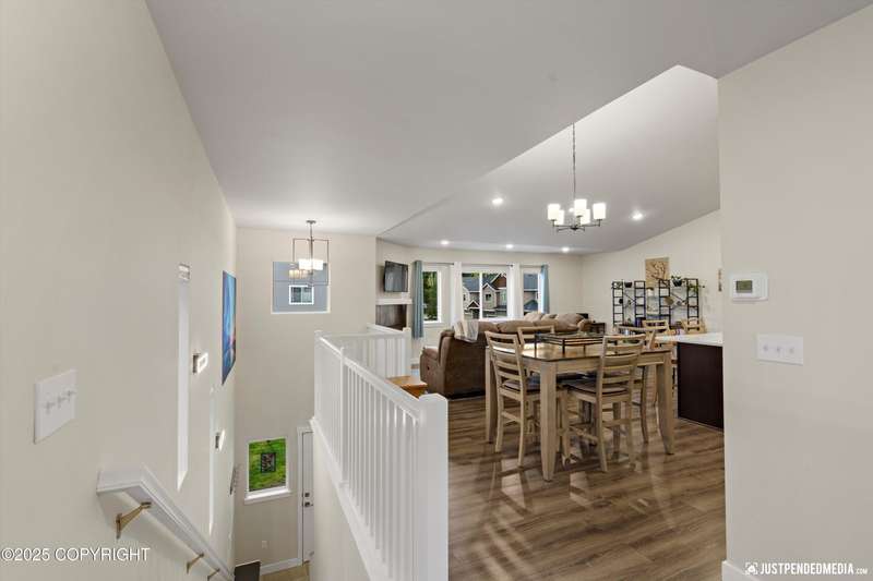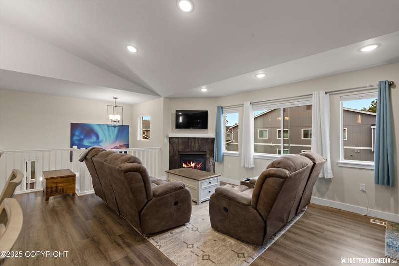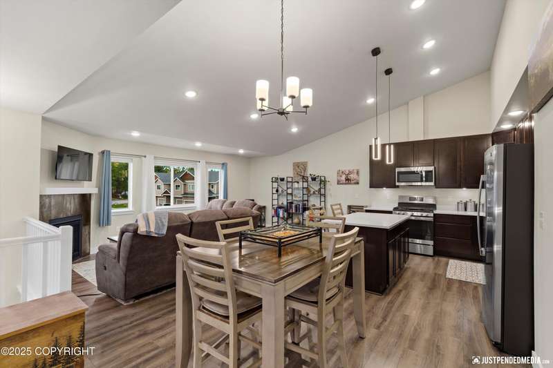 IMAGINE stepping into this stunning open-concept home with soaring vaulted ceilings, & a bright welcoming layout. With connecting kitchen, dining & living rooms featuring a corner gas fireplace. Kitchen features quartz countertops, SS appliances, 42'' uppers & breakfast bar island. Spacious master suite, double vanities & large walk-in closet. Ground level offers 2 bedrooms, full bath & laundry!
