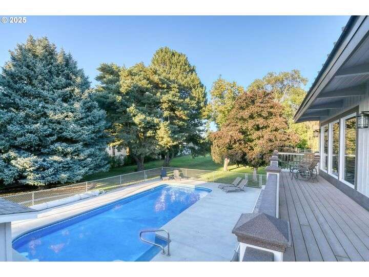 Location Location Location – Small acreage outside the city limits but close to town. Fully fenced, paved governors drive set on over 3.4 acres of irrigated ground and fully landscaped. This updated home has 3 bedrooms, 2.5 baths plus a den, 2 car garage, expansive views, and a full length Trex deck along the back of the home. Chefs kitchen with Viking appliances, granite counter tops, large island, walk in pantry, hammered copper sink and travertine floors. The primary suite leads to back lawn and pool area, has a large walk- in closet with a marble top dresser. The back lawn in private with privacy fencing, mature trees, and extensive rock work. The outdoor pool just had a brand new pool liner installed, the pool professionally maintained and has a pool house for all the equipment. Lots of shade to enjoy the summer evenings by the pool in your private oasis. The shop is 30x40 fully wired insulated and finished with two 9’ doors, one 12’ door and custom built in cabinets. The property is level with options for any of your future plans. A must see if your in the market for a one of a kind home with top end finishes, lots of storage, parking and room to grow.