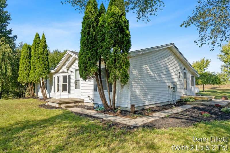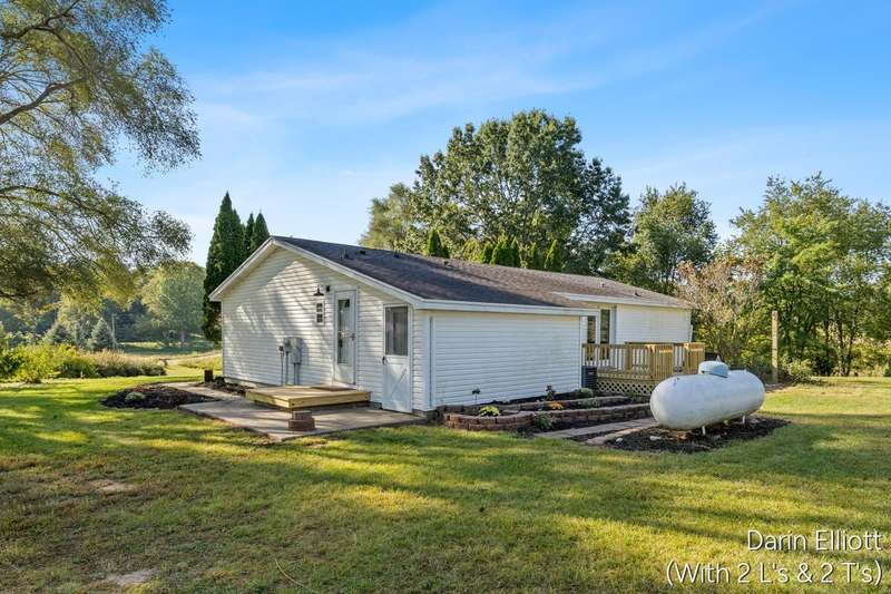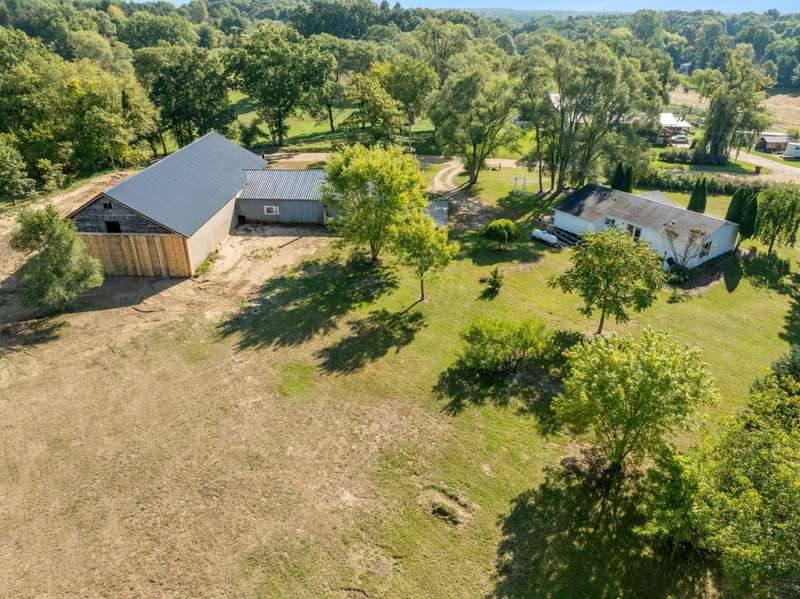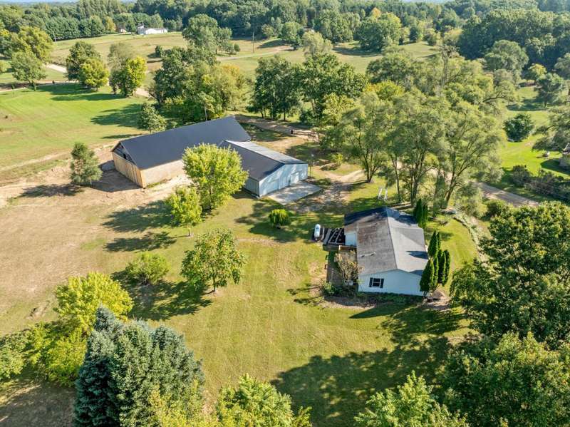 Welcome to 7131 Cowman Rd. Impossible to find 1400+ sq ft, 3 Bed, 2 Full bath, home with a nearly 10 Acre Absolutely Gorgeous Country setting. Wide open floorplan, cathedral ceilings, & large primary suite with private bath. Dining room has sliders to new deck and panoramic views of the beautiful back yard. Full Poured Wall Basement offers plenty of room and potential to easily double your living space. Home has been extremely well cared for and updated. Brand new kitchen including cabinets, counters, tile backsplash, and fixtures New flooring throughout. Good roof approx. 10 years. Home is mechanically sound. Central air. Main floor laundry. The icing on the cake is the 36x56 detached garage and 40x80 pole barn with new roof. Unlimited storage and perfect setup for home business. Unbelievable rolling, open, and wooded property. Seller will entertain offers for house and 3 acres. Possession at close. Hurry to get nestled into your new home before snow flies!