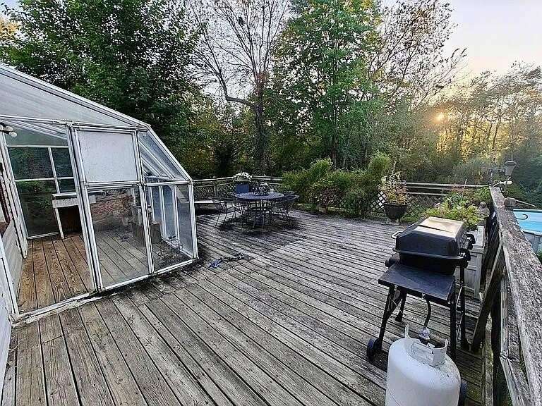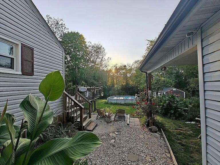 Welcome to this charming 3-bedroom, 1-bathroom home offering the perfect balance of comfort, functionality, and outdoor living. The spacious eat-in kitchen provides ample room for dining and entertaining, while the cozy living areas make this home warm and inviting. Enjoy the outdoors in a fully fenced yard, with the front and back yards separated by a gate for added privacy and convenience. The beautifully landscaped property features mature trees, vibrant gardens, and a greenhouse-perfect for year-round gardening. Spend summer days relaxing in the above-ground pool or entertaining in your peaceful backyard retreat. A large detached garage offers plenty of space for parking, storage, or a workshop. This property has been lovingly maintained and is move-in ready-ideal for families, hobbyists, or anyone looking for a welcoming place to call home.