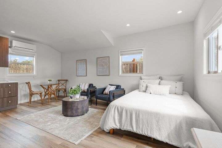 Welcome to this charming 4-bedroom, 2-bathroom home located in the coastal town of Half Moon Bay. Spanning 1,580 square feet, this property offers a comfortable and functional layout. The kitchen is well-equipped with modern amenities, including an new oven/range a solid surface countertop, dishwasher, and pantry, perfect for culinary enthusiasts. The home features a cozy fireplace, complemented by central forced air-gas heating, access to rear patio from primary suite and family room kitchen. The residence boasts a combination of carpet and tile flooring, providing a warm and inviting atmosphere. Primary suite complete with a walk-in closet previuosly the 4th bedroom. Additional amenities include in-garage laundry washer and dryer. Garage was set up as a quilting/hobby room would make a great workout room or home office, lots of built in storage. Recently built studio ADU can be used for extra income, family, home office, or guests that now know you live in Half Moon Bay and want to visit often. Set in the Cabrillo Unified school district, this property ensures access to the local educational system. The lot size offers space for outdoor enjoyment and includes two sheds for extra storage. Don't miss the opportunity to make this Half Moon Bay gem your own!