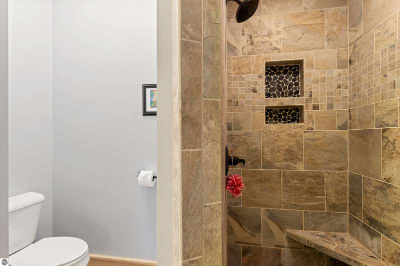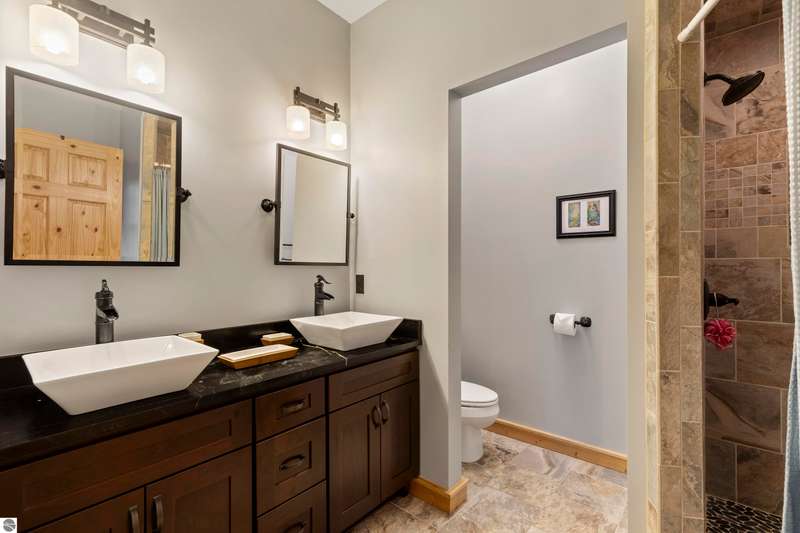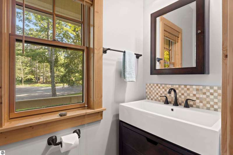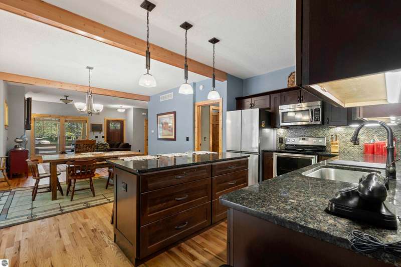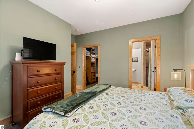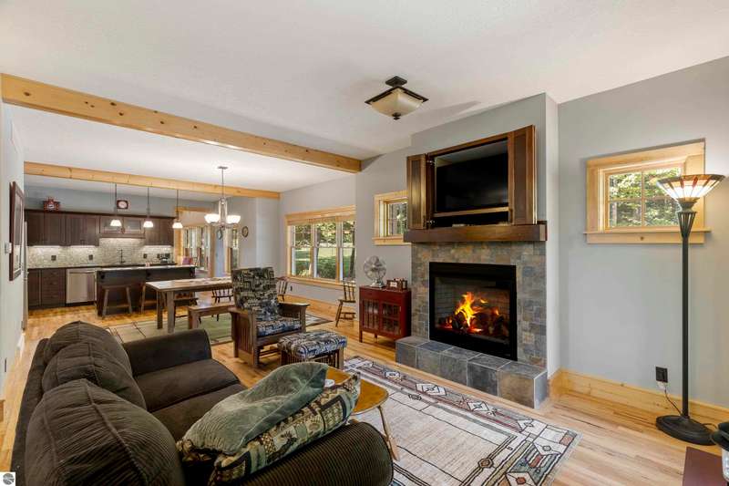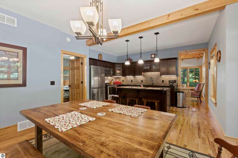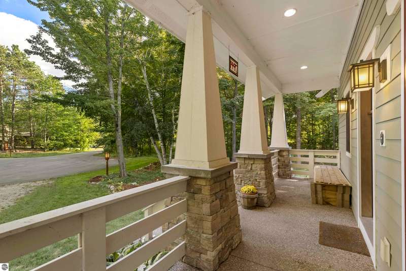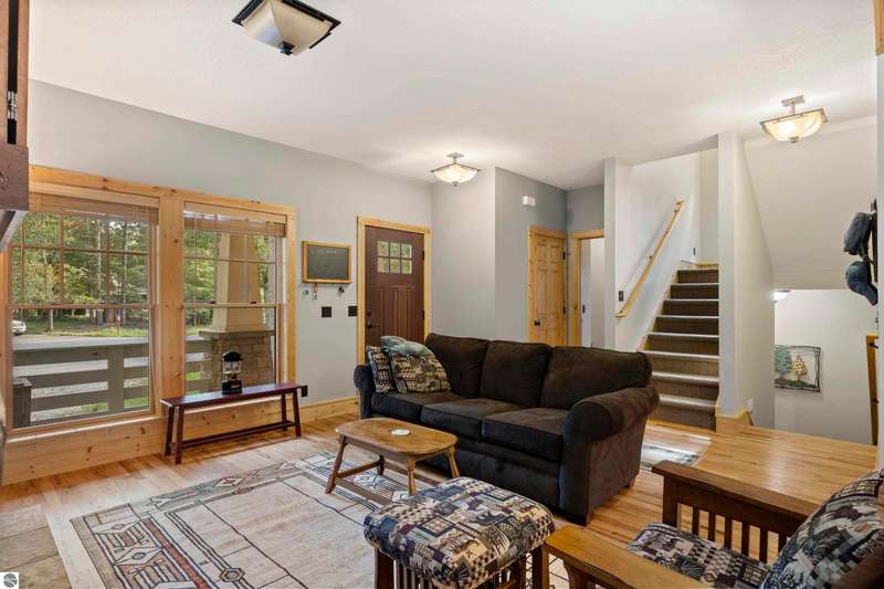 Experience year-round comfort and elegance in this like-new four-bedroom, three-and-a-half-bath home offering over 2,500 sq. ft. of living space on the Betsie Valley Golf Course at Crystal Mountain. Lightly used by the sellers, the home feels fresh and move-in ready. Step inside to find warm wood accents, vaulted ceilings, granite countertops, hardwood floors, and an open layout designed for gathering with family and friends. The spacious main floor features a primary suite, comfortable living spaces, and a convenient half bath, all with easy flow to the outdoors. Upstairs, a versatile loft includes a charming built-in doghouse nook along with additional bedrooms, providing both privacy and flexibility. The finished lower level is set up for fun with a game area, family room, kitchenette, extra bedroom, and full bath. Enjoy summer evenings on the patio, gather around the fire pit under the stars, or relax on the covered front porch overlooking a wooded setting and beautifully landscaped grounds. Whether you're looking for a year-round residence or a seasonal retreat with rental potential, this property offers it all. Just a short walk, bike ride, or shuttle bus brings you to the heart of Crystal Mountain's amenities: skiing, golf, spa, restaurants, shops, and year-round activities. This is your chance to own a home in one of Northern Michigan's premier resort communities--where memories are made in every season. Furnishings and contents are negotiable, offering a convenient turn-key option for immediate enjoyment. A Rental Proforma is available.