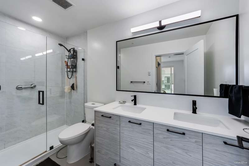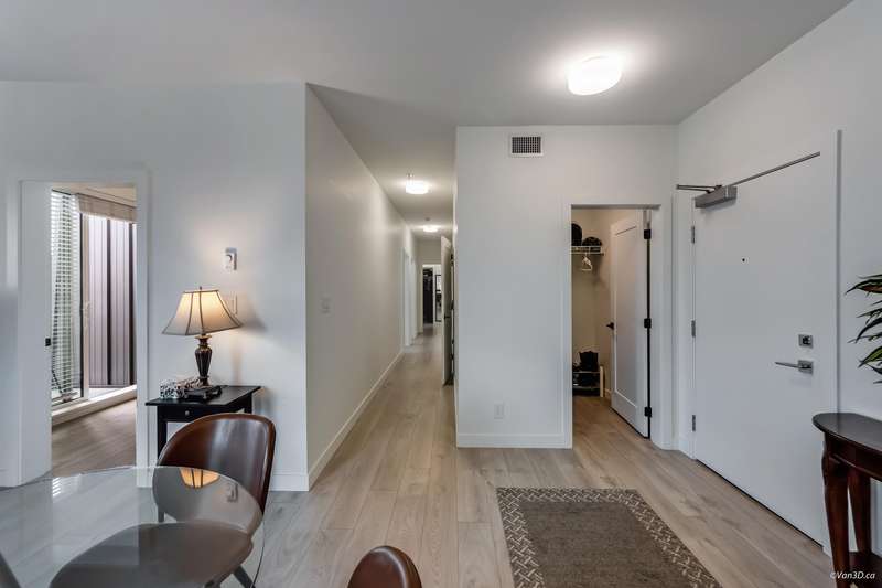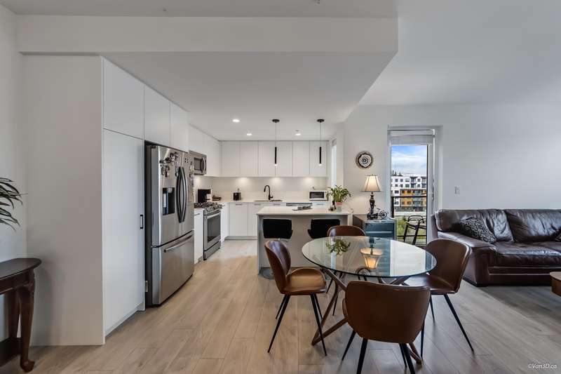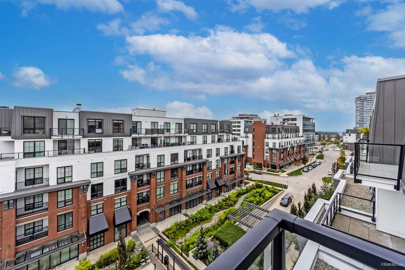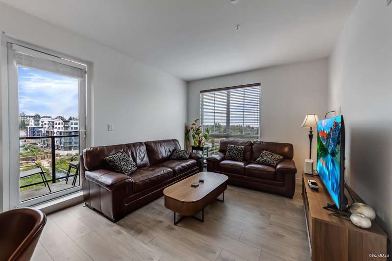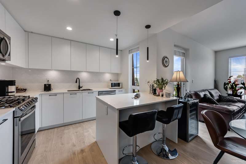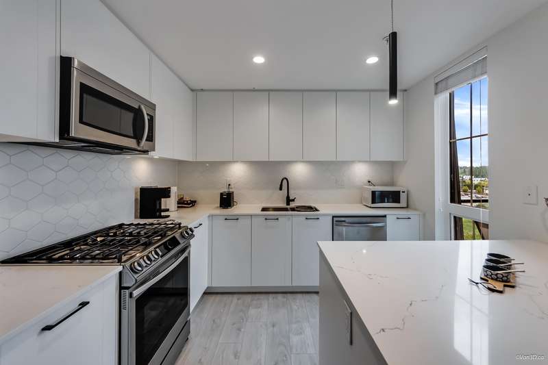Welcome to this beautifully designed corner unit featuring 3 bedrooms, 2 bathrooms, and a den with a custom home office. The open-concept kitchen includes stainless steel appliances, a gas range, island with quartz countertops, and laminate flooring throughout. Enjoy a spacious primary suite with walk-in closet and a luxurious ensuite. Additional features include custom cabinetry, 3 balconies, and 3 side-by-side parking spots next to the elevator with a storage room next to it. Located in the vibrant Latimer Village-steps from cafes, restaurants, parks, schools, Willowbrook Mall, Costco and Hwy 1. Open House SUNDAY Oct 12 from 2:00 to 4 pm.
