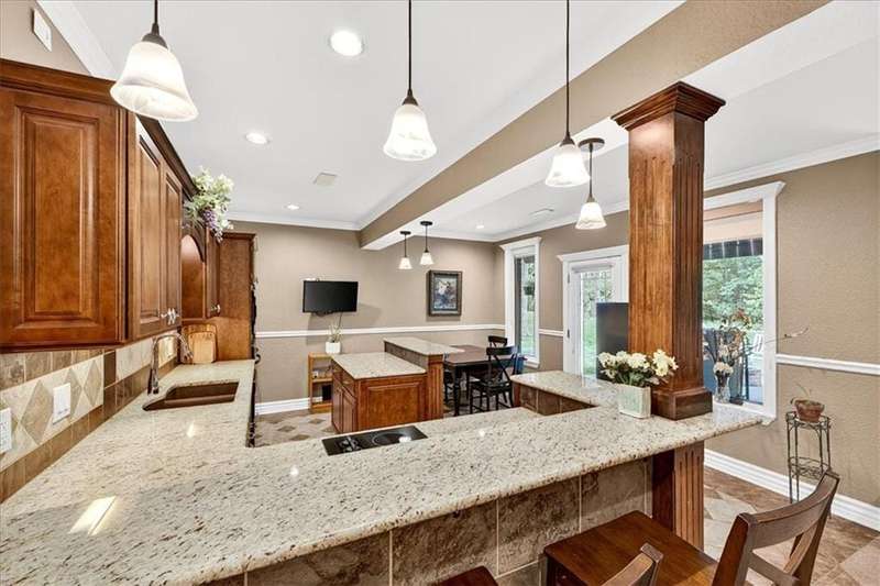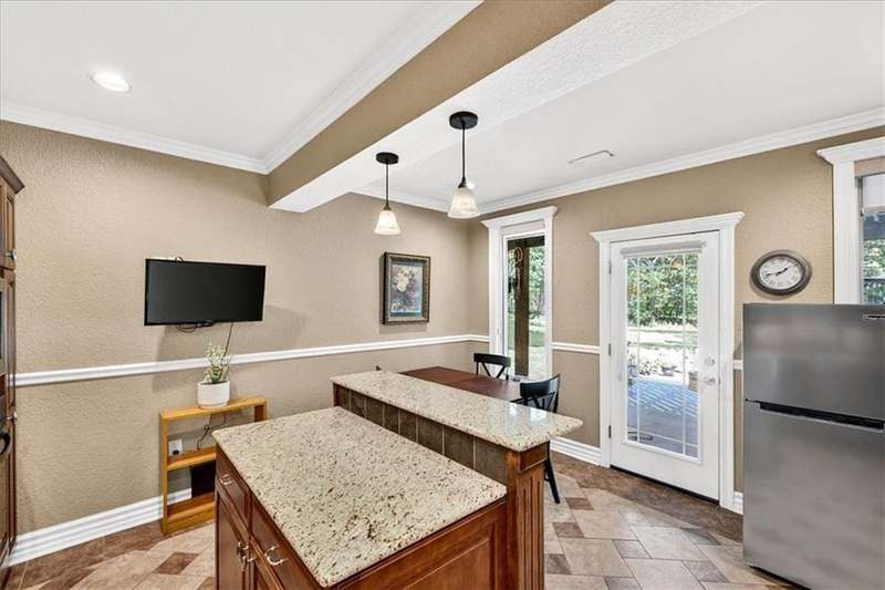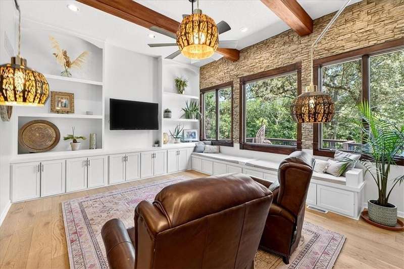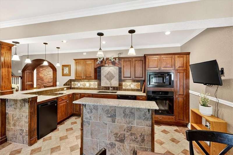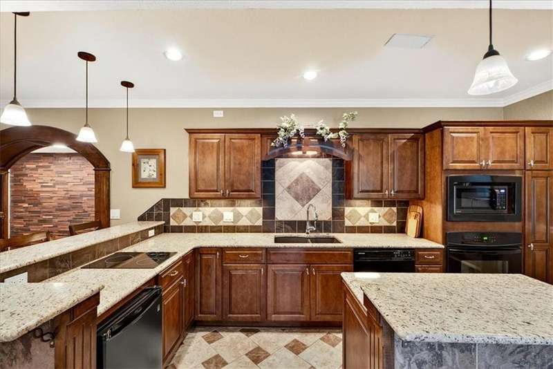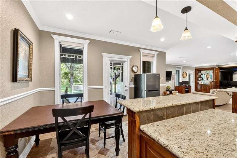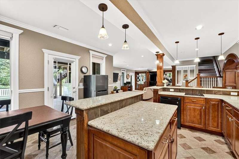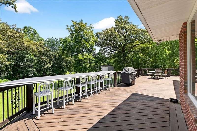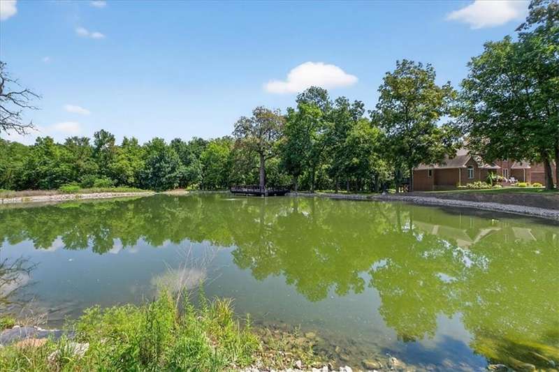Welcome to your private oasis in Greenwoodwhere nature meets luxury and no detail has been overlooked!This stunning home has been thoughtfully updated on every level, starting with a fully remodeled kitchen and a warm, inviting living room featuring floor-to-ceiling built-in bookshelves and expansive window benches for cozy seating. You'll appreciate the beautiful new flooring that flows throughout the main level and upstairs bedrooms. You'll be wowed by the the impressive main floor primary ensuite. Upstairs, you'll find yet another primary suite, complete with a lavish, spa-inspired bathroom where elegance takes center stage.The walkout basement offers a second fully functional living space, complete with a full kitchen, two non-conforming bedrooms, and a full bathideal for guests, family, or simply entertaining. Bonus features include a dedicated theater room and access to a peaceful, covered patio.Step outside to enjoy a sprawling wraparound back porch with views of mature oak trees, a serene creek, and a massive 40x60 workshop. The front of the property boasts a fully stocked pond with an aerator and a large dock featuring a diving boardperfect for fishing, swimming, or even ice skating in winter. This property is more than a homeit's a lifestyle retreat.