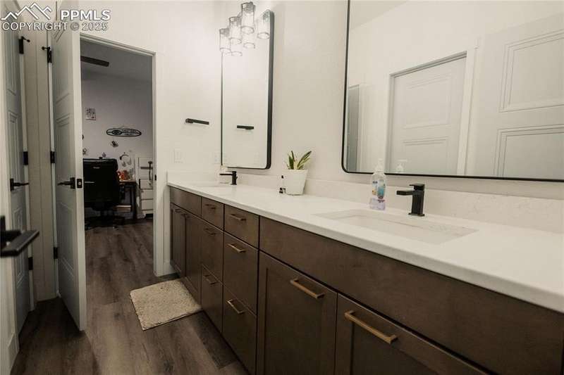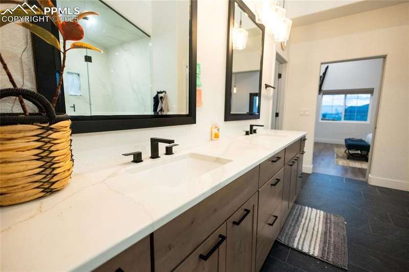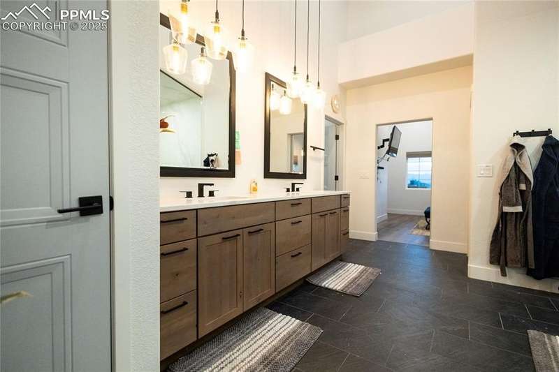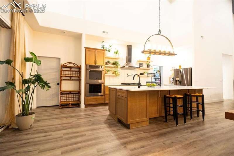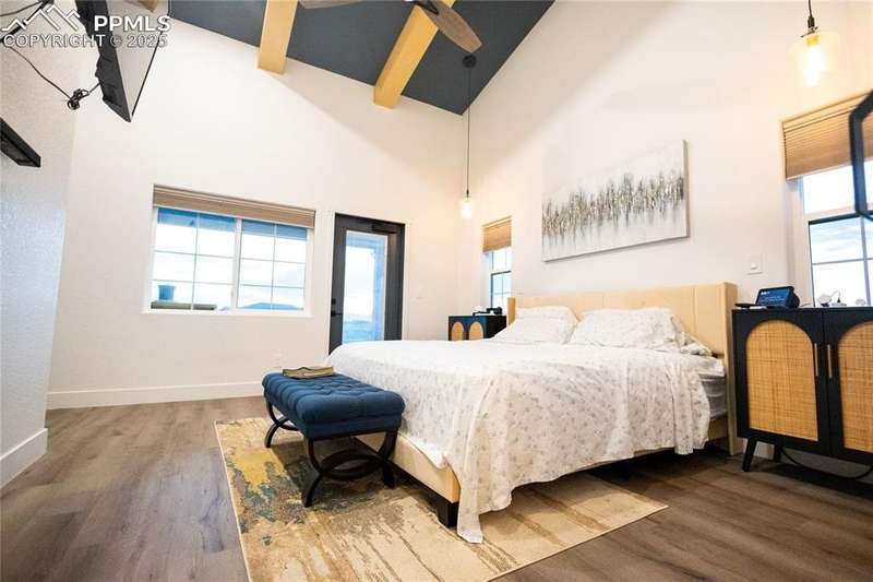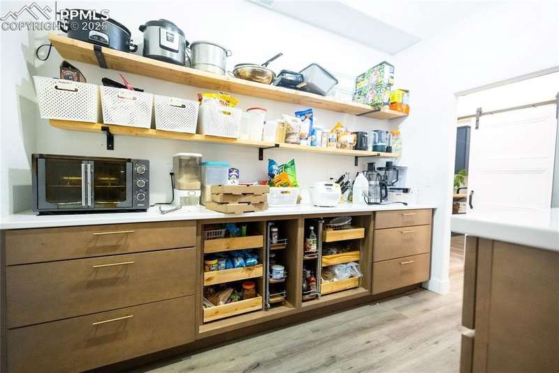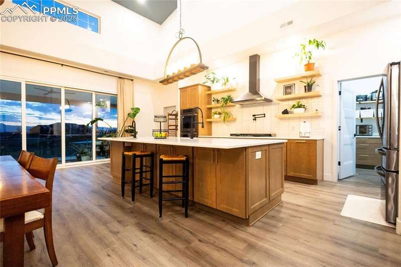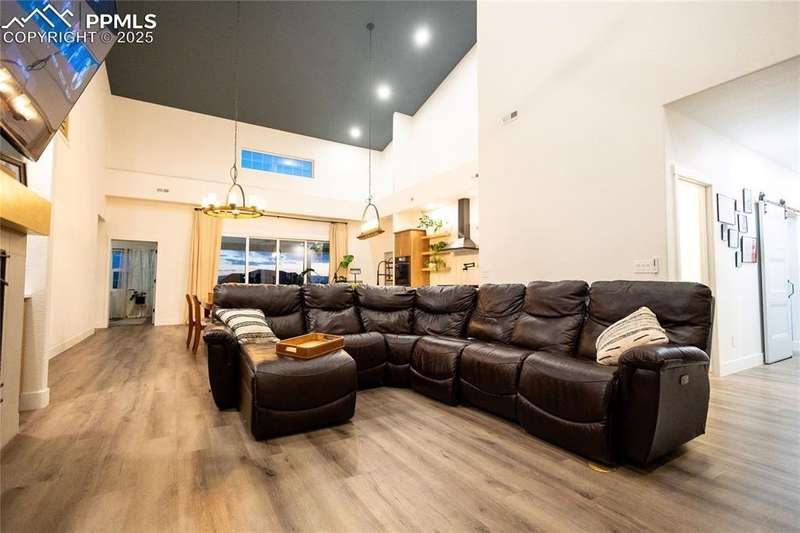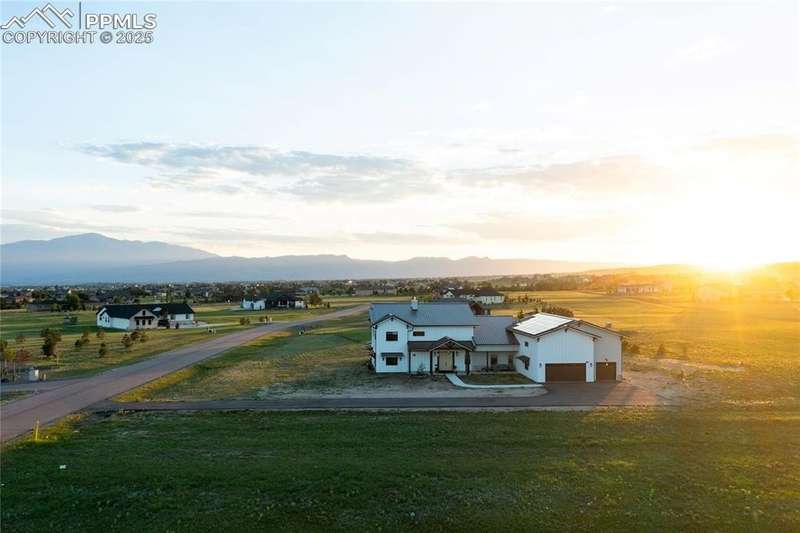 It is a rare occasion when a residence successfully harmonizes the tranquility of pastoral living and contemporary luxury. Situated within the distinguished Highland Park community, just beyond the vibrant Woodmen and Powers corridor, this estate offers both seclusion and convenience. On 2.7 expansive acres, the property affords an unparalleled sense of space, with the Rocky Mountains themselves serving as the backdrop to your daily rhythms. The barndominium has rapidly grown in popularity. Searched nearly 17,000 times per day. Yet, many quickly discover the complexity of constructing one from the ground up. This home resolves that challenge by presenting a barndominium-style residence already masterfully designed and built. Allowing you to skip plans and permitting, and instead step directly into a finished expression of the lifestyle you desire. Comprising six bedrooms, four and one-half baths, and nearly 4,000 square feet, this residence is both generous and thoughtfully configured. The main level offers three secondary bedrooms, perfectly suited for multigenerational living, guest accommodations, or private workspaces, while the primary suite occupies a distinct wing, ensuring privacy and retreat. The primary ensuite evokes a spa-like atmosphere, one typically reserved for curated design publications. The garage features a pull through design for convenience and includes a second level loft an adaptable space ideal for a private office, workshop, or studio. Inside, the sense of openness is enhanced by vaulted ceilings, elevating the home’s architectural character while flooding the interiors with light. The culinary heart of the home is equally impressive a chef’s kitchen designed for both daily living and elevated entertaining, complemented by a butler’s pantry that offers discretion and utility. And with step free exterior entry, this property is designed to grow with you equally accommodating for vibrant living today and graceful aging tomorrow.