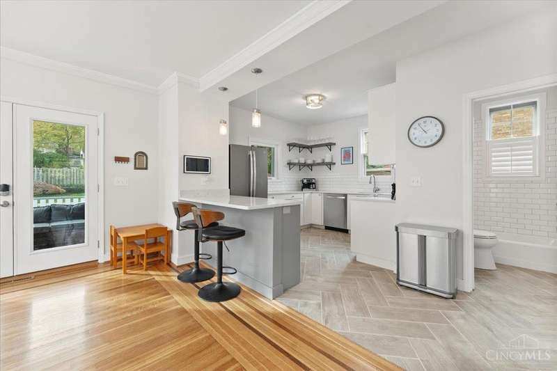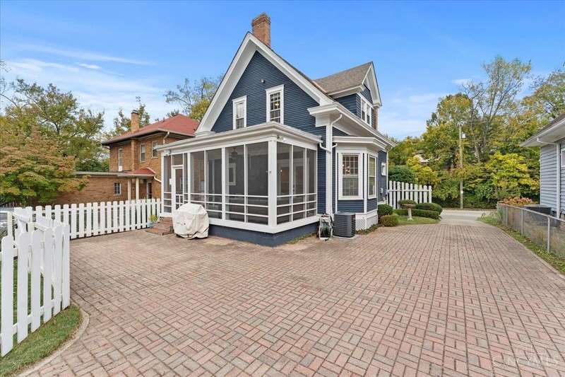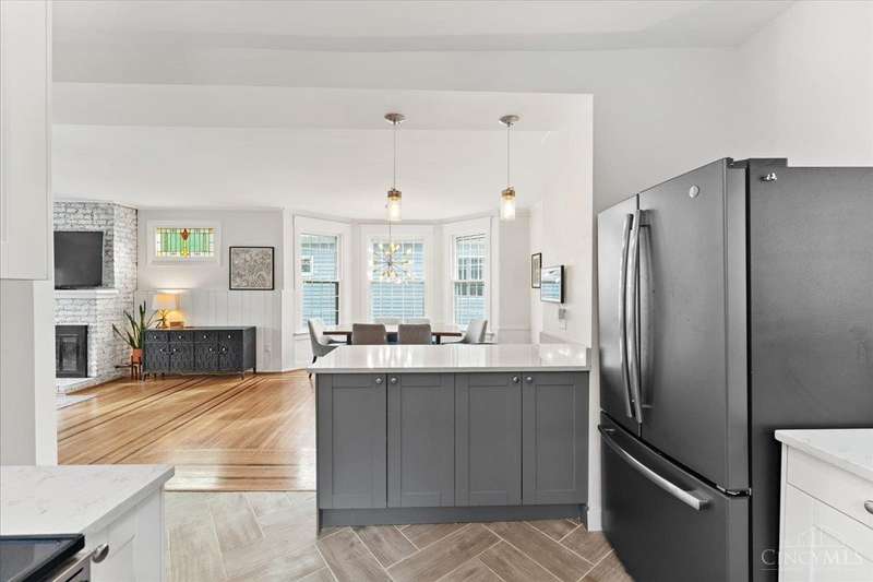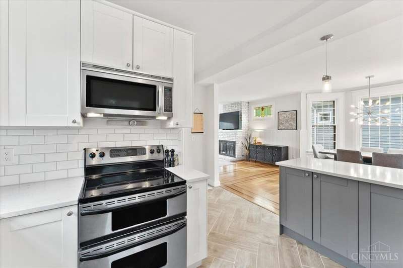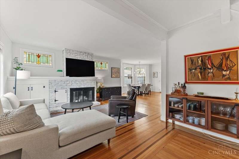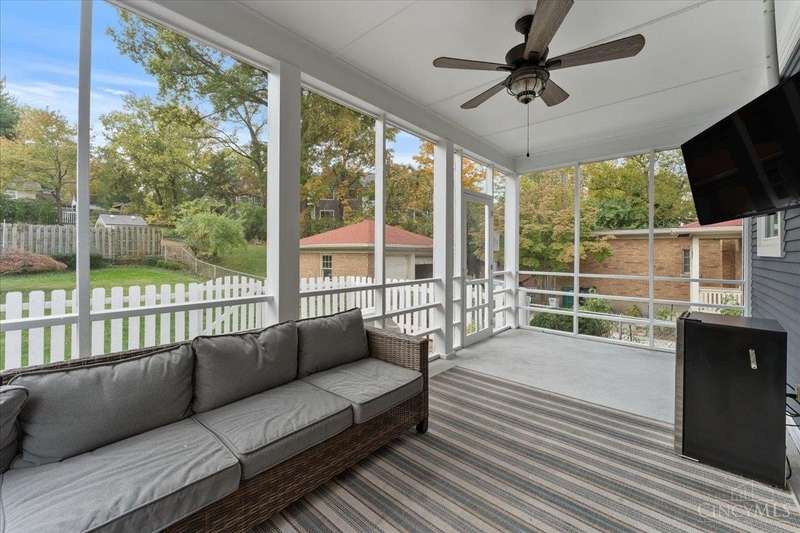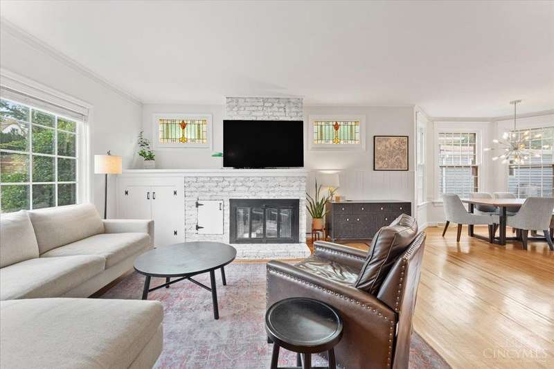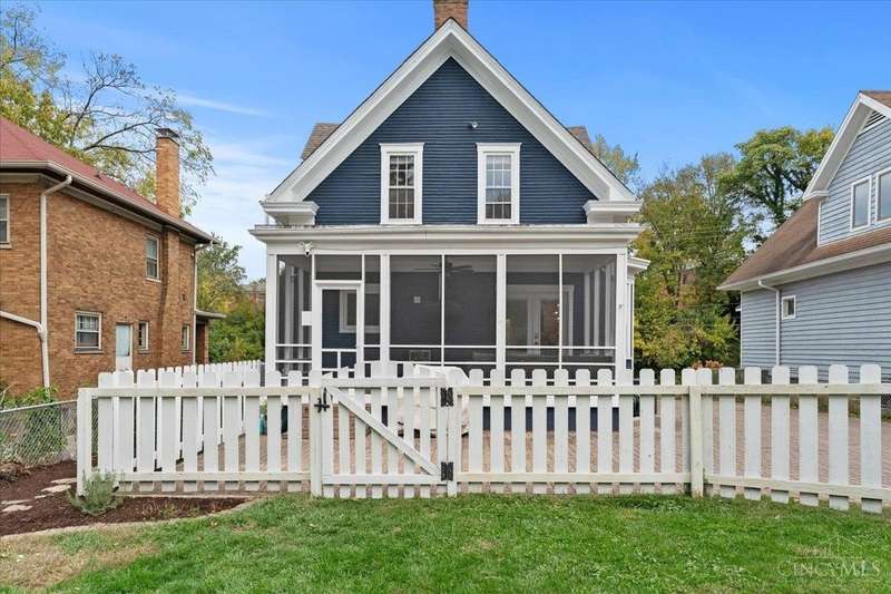 Completely renovated in 2020, this home is filled with natural light and history. Beautiful picture-framed hardwood floors, stained-glass windows, and modern updates throughout. The first floor features a completely open layout with a gas fireplace and a full bathroom. Double doors open up fully to a screened in porch perfect for indoor/outdoor living. The updated kitchen has quartz counters, a double oven, and modern finishes. Upstairs you will find spacious closets including dual closets in the primary. Private, fully fenced backyard and a generous driveway with carport offering plenty of parking. Excellent location, just a short stroll to Mount Lookout Square.