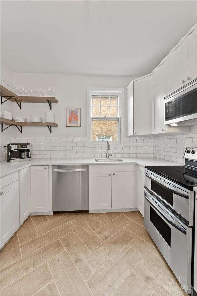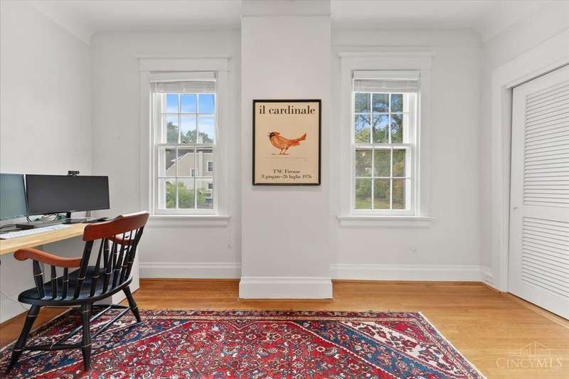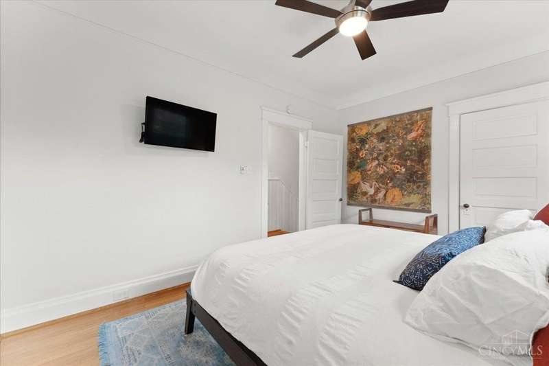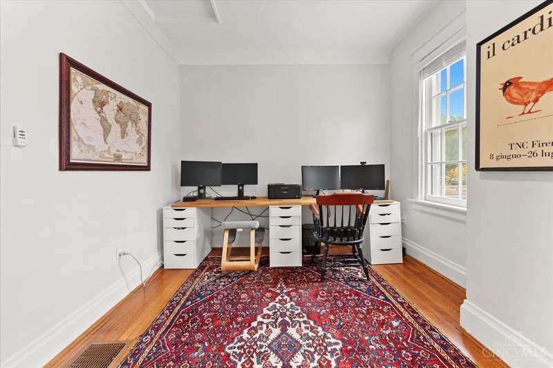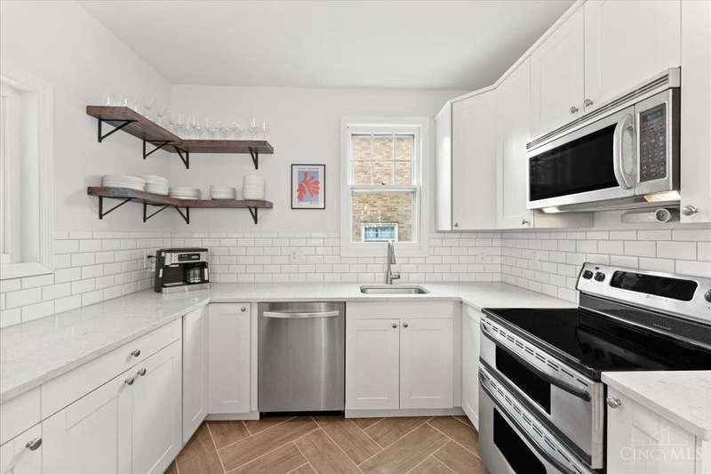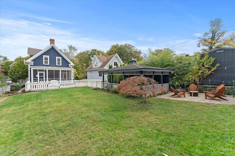 Completely renovated in 2020, this home is filled with natural light and history. Beautiful picture-framed hardwood floors, stained-glass windows, and modern updates throughout. The first floor features a completely open layout with a gas fireplace and a full bathroom. Double doors open up fully to a screened in porch perfect for indoor/outdoor living. The updated kitchen has quartz counters, a double oven, and modern finishes. Upstairs you will find spacious closets including dual closets in the primary. Private, fully fenced backyard and a generous driveway with carport offering plenty of parking. Excellent location, just a short stroll to Mount Lookout Square.