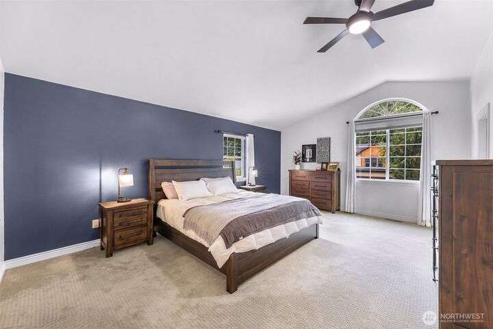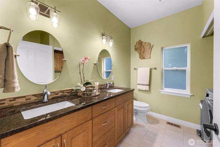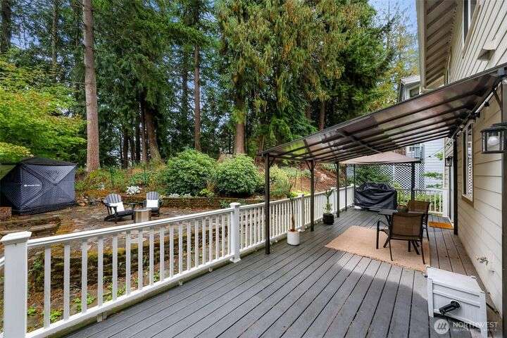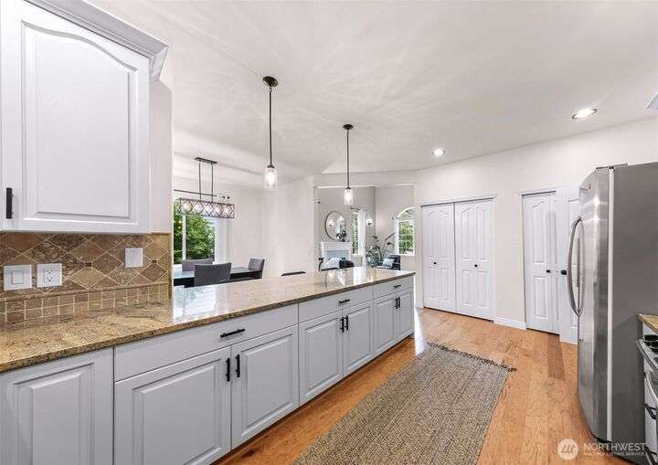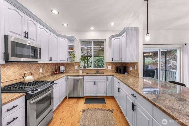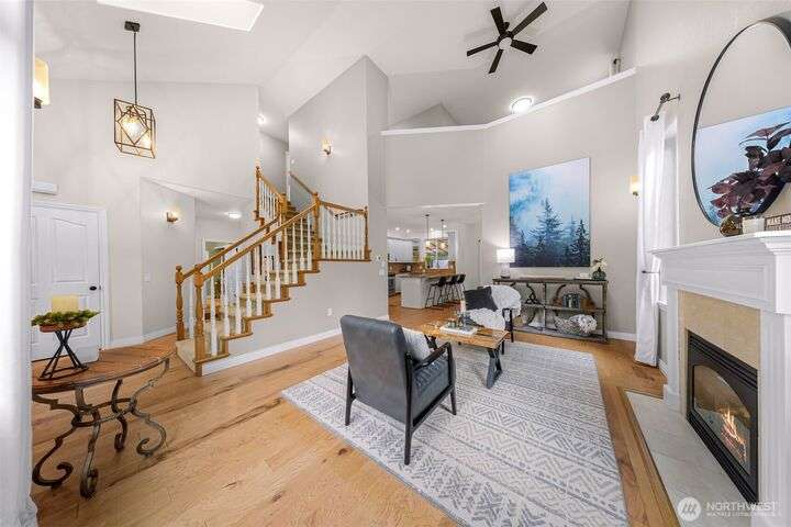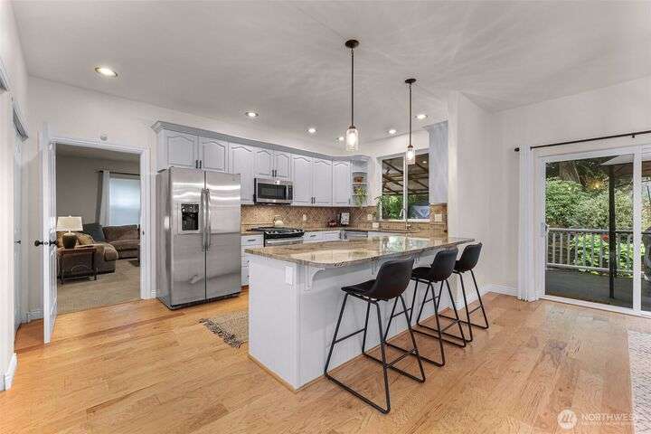 Sunny Gate 1 gem in Sudden Valley! Step into this light-filled fresh home with soaring ceilings, skylights & PNW views. The spacious layout features large bedrooms, a loft, and both family and living rooms for comfortable, flexible living. Gorgeous hardwood floors, granite counters & stainless appliances surround the open kitchen with eating bar. Upstairs find bedrooms, and flex space perfect as a home office, yoga studio or playroom. Two walk-in closets in grand primary suite. The covered composite deck and stone patio are perfect for bbq’ing & Adirondack chair relaxing. Flat driveway with parking for 4 cars. Explore nearby trails, private beaches, golf course, and marina access with boat launch—just short drive to downtown Bellingham.