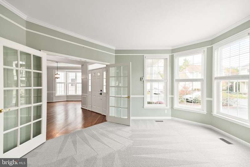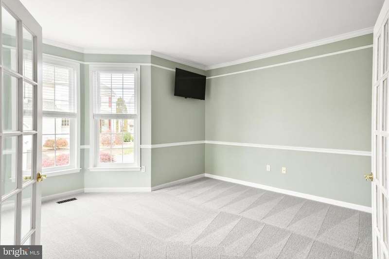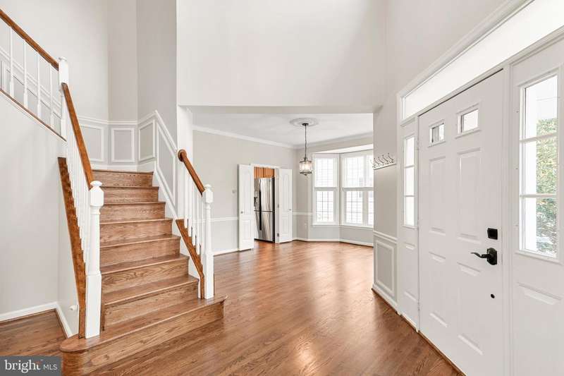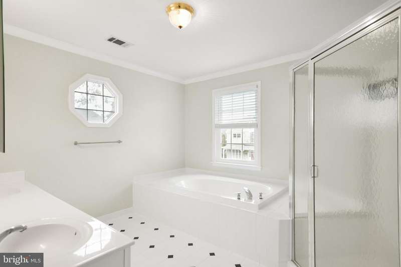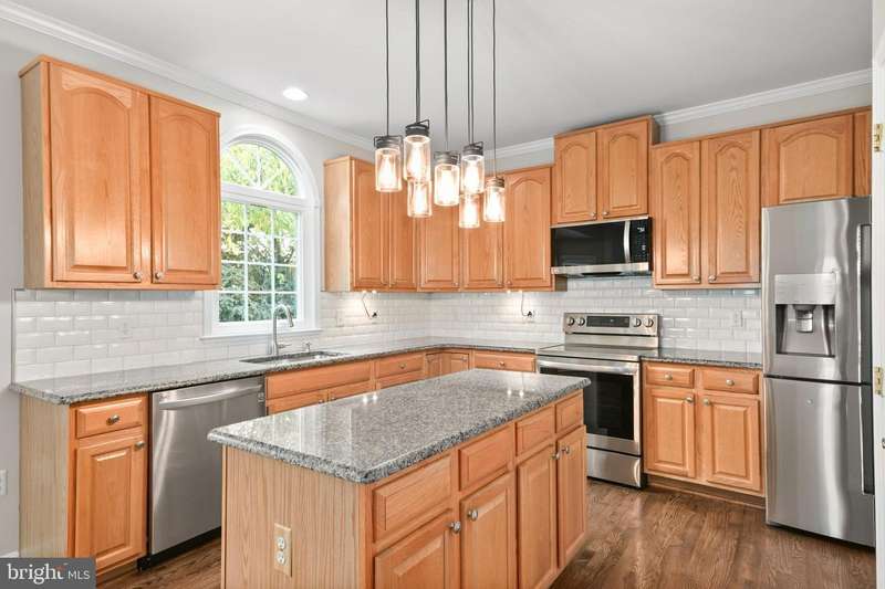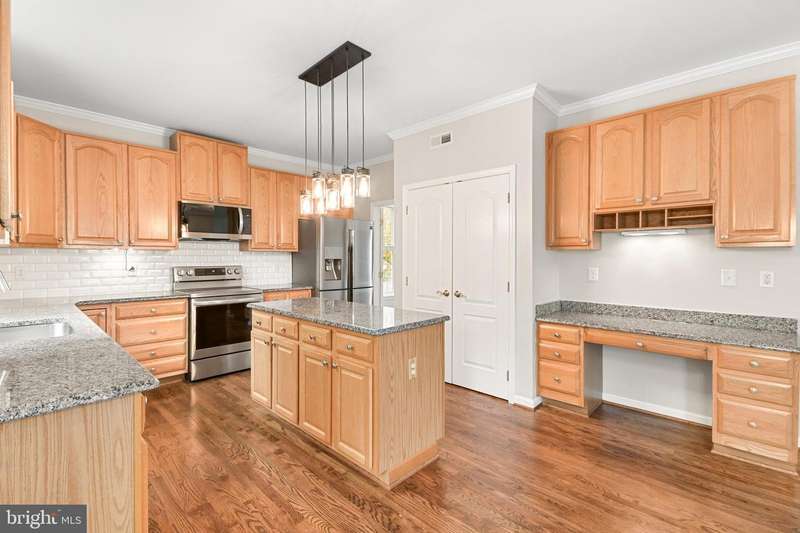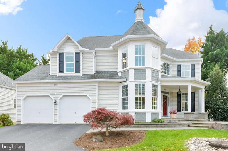 Perfectly located facing Wormans Mill's Rothbury cul-de-sac, this beautifully appointed and landscaped colonial is the one to see! From the paver walkway and covered front porch to the paver patio with surrounding knee wall, this door to door beauty is turn key ready. Professionally refinished hardwood floors welcome you into the 2 story foyer where you'll find a bright and spacious main-level office with French doors, open concept dining room with access to the kitchen, powder room and laundry/mudroom with access to the 2 car garage. The 2 story family room with gas fireplace and custom automatic blinds includes access to the patio and opens to the large kitchen complete with granite countertops with subway tile backsplash, 42 inch cabinetry, stainless steel appliances (oven, dishwasher and microwave all 2022), island, double door pantry and separate workspace with extra cabinets and a bright, open breakfast area overlooking the patio. The upper level hallway of refinished hardwoods with a 2 sided overlook leads you to the secondary bedrooms, recently updated full hall bathroom and the Primary suite, complete with walk-in closet and private bathroom with dual sinks, soaking tub and separate shower. The expansive lower level offers a game room, large media room with built-in surround sound, finished craft/workroom with utility sink, recessed lights and built in shelves and an additional unfinished storage area. Quality built with decorative and boxed molding, 2 panel doors, wainscoting and many upgrades to include lighting, 3 bathrooms, fresh paint, roof (2019), all new windows (2023) and gutters (2025), upstairs carpet (2021), main level carpet (2024) and even a 220 line ELECTRIC CAR CHARGER in the garage. With the prime location and all the neighborhood amenities, it's the one you've been waiting for!