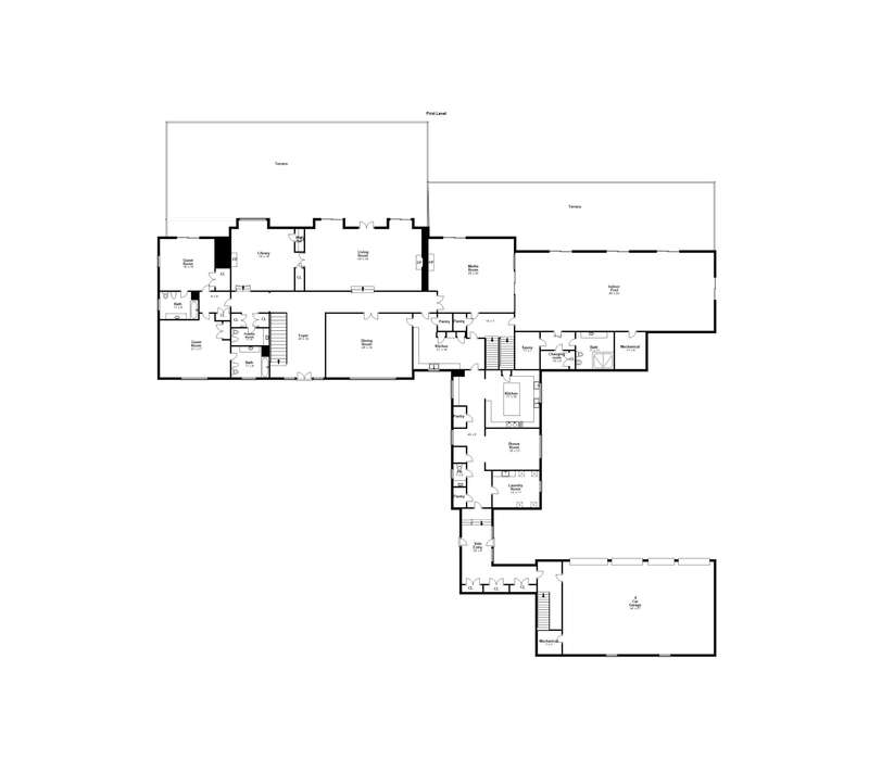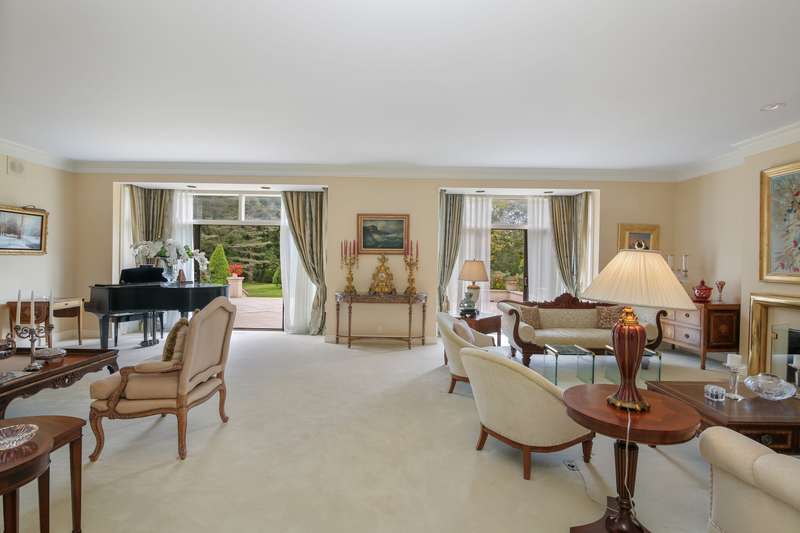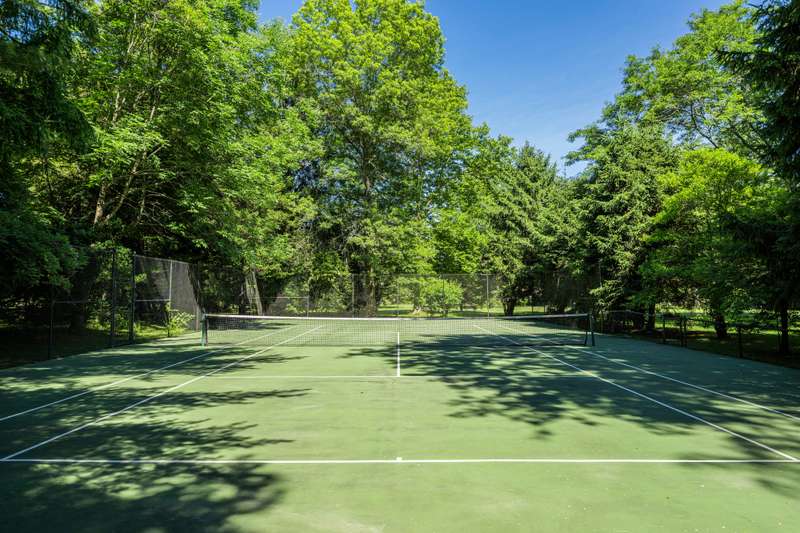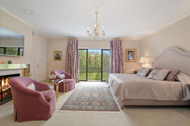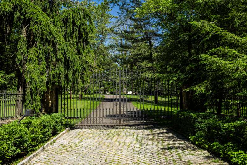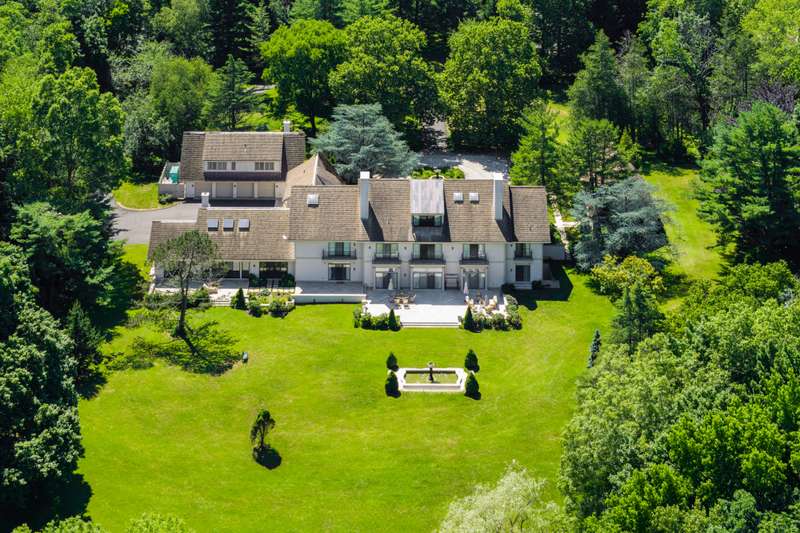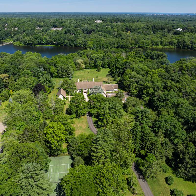 Eight private, gated acres showcase a sprawling back-country home with stone terraces, secluded backyard, fountain and resort-style amenities including tennis court, indoor pool, spa, steam room and separate office. Thoughtful floor plan accommodates both grand scale entertaining as well as comfortable everyday living with elegant formal rooms, fireplaces in living, family rooms and library; gourmet and catering kitchens. Twelve bedrooms provide plenty of sleeping options with two main floor guest suites, second floor primary suite with fireplace and separate two bedroom suite with sitting room over four-car garage. Lower level reveals tasting room/wine cellar; media room with bar, gym and half bath. Located just minutes from town and schools with views of Rockwood Lake and across from Babcock Preserve.