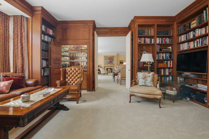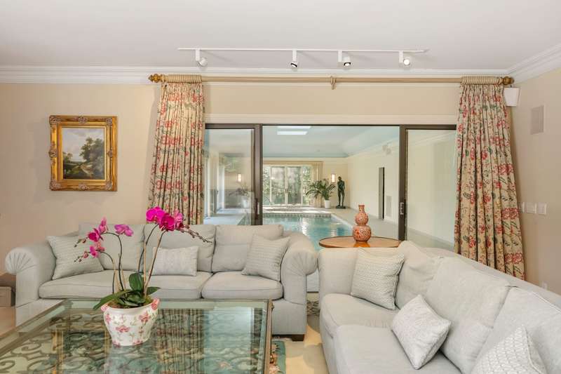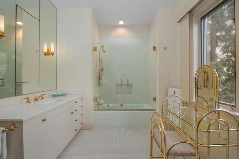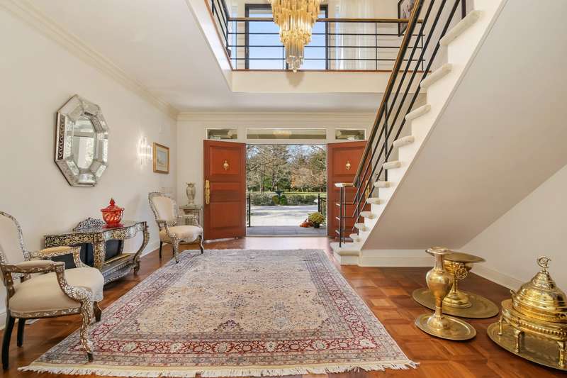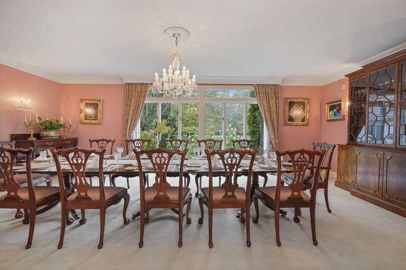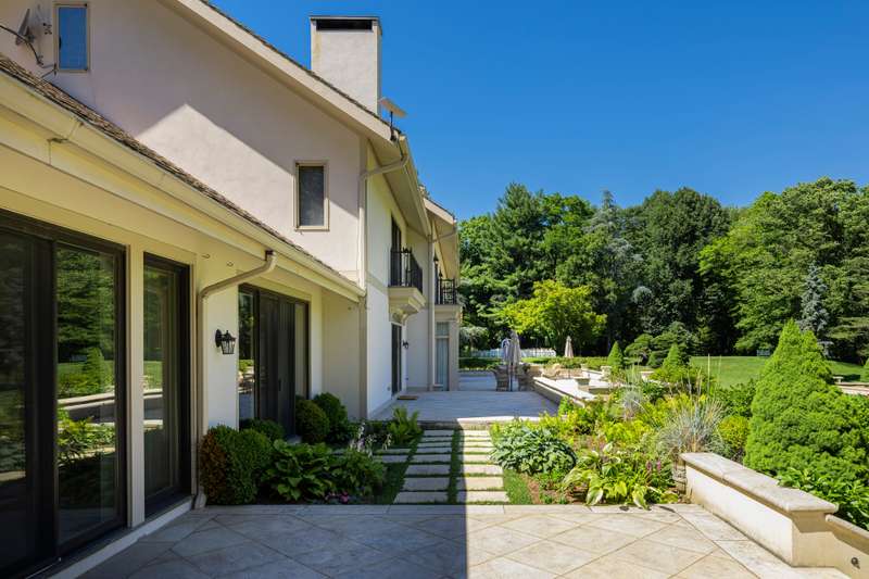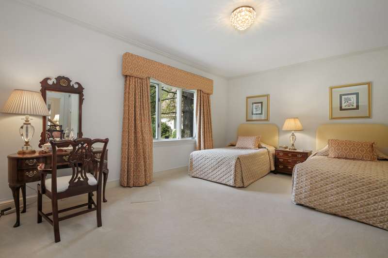 Eight private, gated acres showcase a sprawling back-country home with stone terraces, secluded backyard, fountain and resort-style amenities including tennis court, indoor pool, spa, steam room and separate office. Thoughtful floor plan accommodates both grand scale entertaining as well as comfortable everyday living with elegant formal rooms, fireplaces in living, family rooms and library; gourmet and catering kitchens. Twelve bedrooms provide plenty of sleeping options with two main floor guest suites, second floor primary suite with fireplace and separate two bedroom suite with sitting room over four-car garage. Lower level reveals tasting room/wine cellar; media room with bar, gym and half bath. Located just minutes from town and schools with views of Rockwood Lake and across from Babcock Preserve.