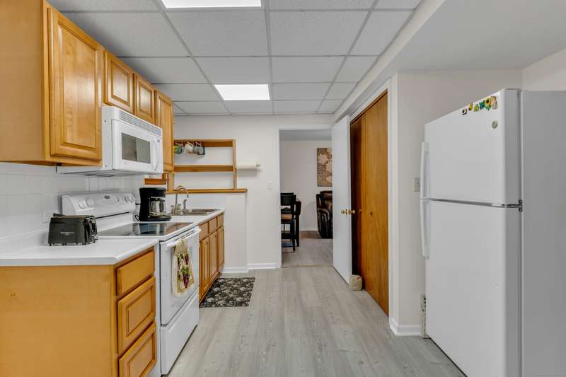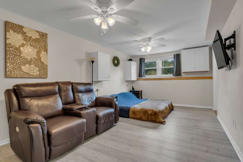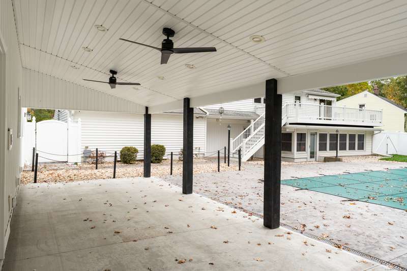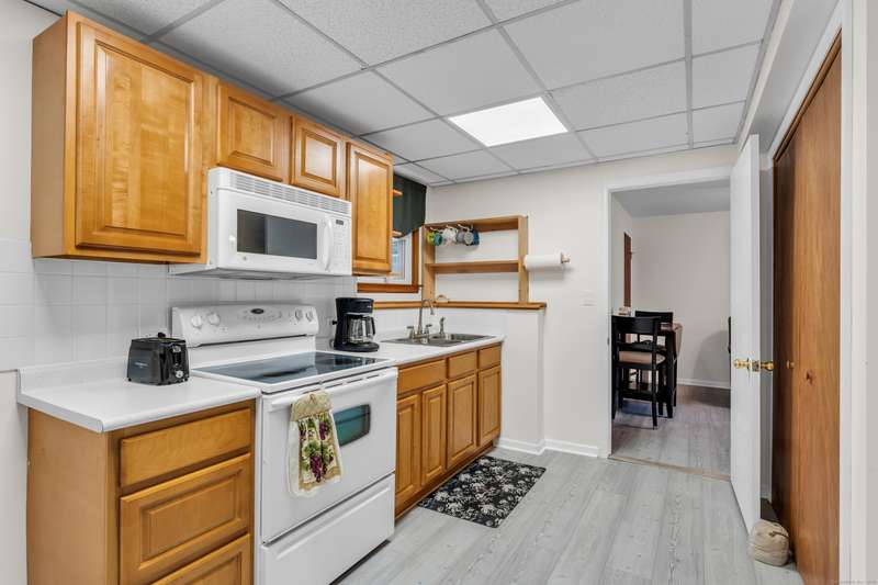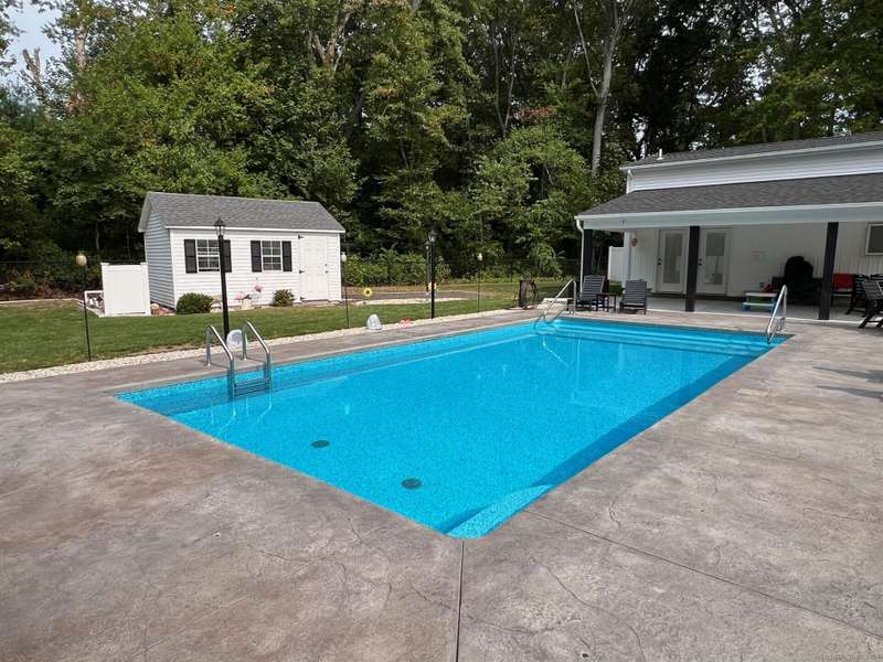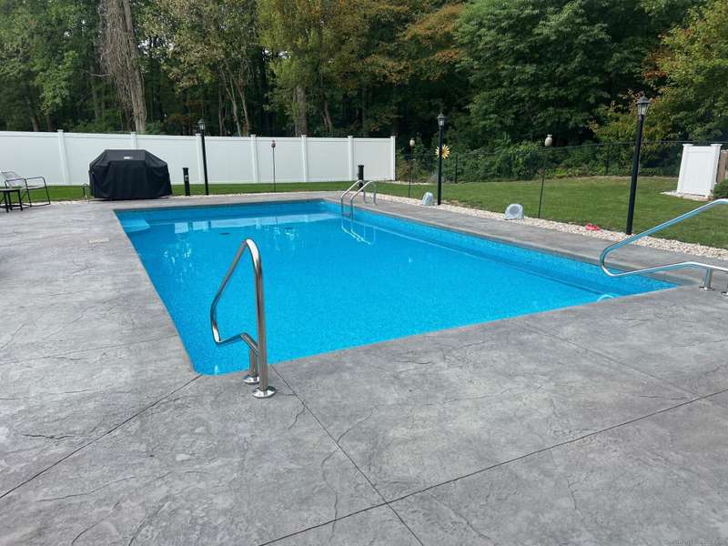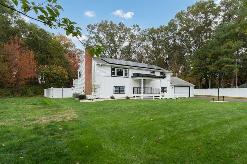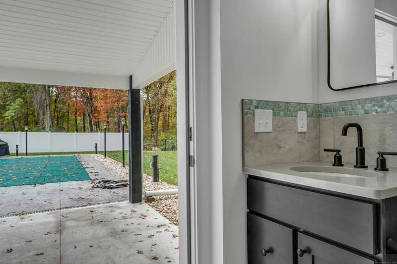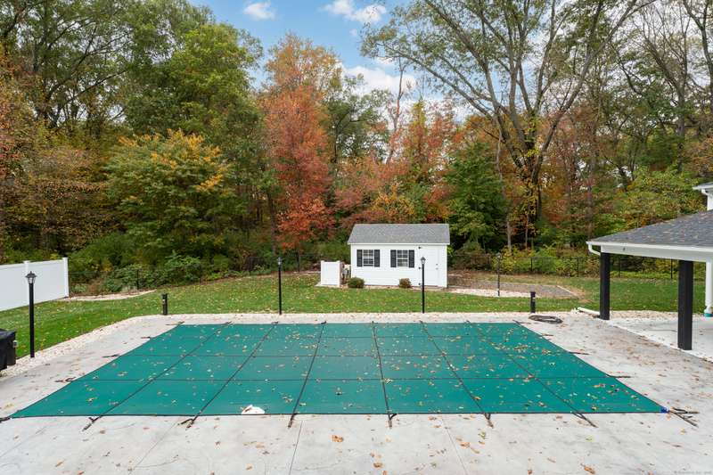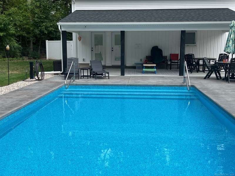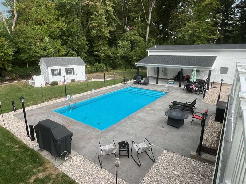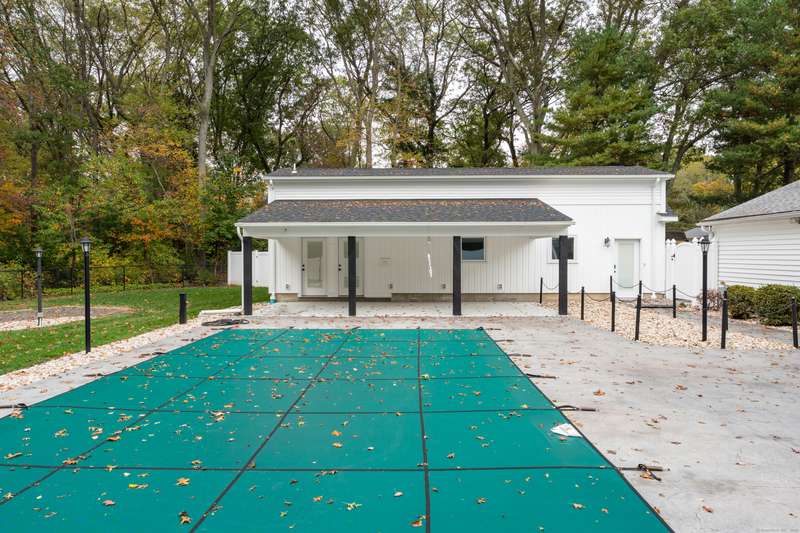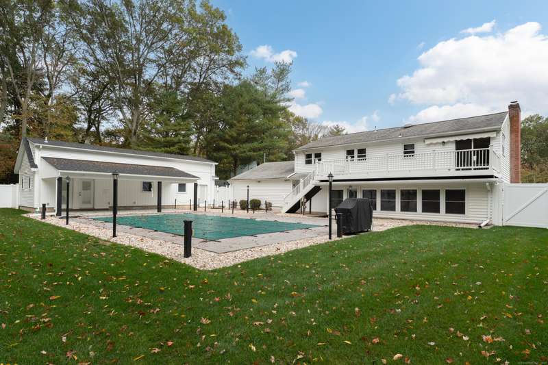 Live, love, laugh and play with your extended family in this updated "multi-generational home" offering multiple options. Nestled among the trees on a quiet street in the heart of North Haven this home boasts 32x16 in-ground pool (2023). Main living offers LR w/FPL, 3BR, full bath, Kitchen w/granite open to DR with doors to deck. Walk out LL "in-law" LR w/FPL, 1BR, kitchen, full bath, sunroom to patio, office, door to attached original 2 car garage. The pool house with full bath and kitchenette attached to additional garage 29x16 (2024) can be used for a variety of uses. New furnace and AC in 2023, paid in full Solar, shed with elec. Asphalt driveway 2024. Camera security system currently working on site and will remain. Irrigation system for ease of care. Minutes to I-91, Merrit Parkway, Quinnipiac University and Yale! Note: Town records show 2Baths and 3rd roughed in, but the 3rd is fully operational in Pool house/ garage. Home being sold "as is". Seller relocating.