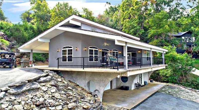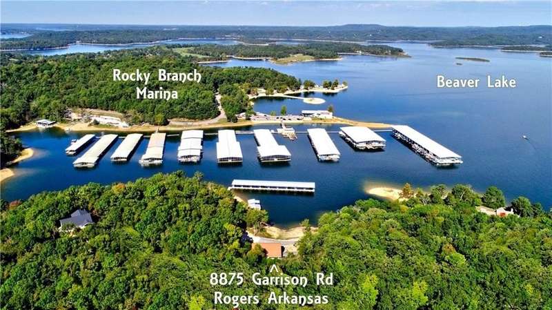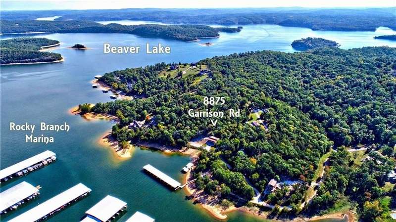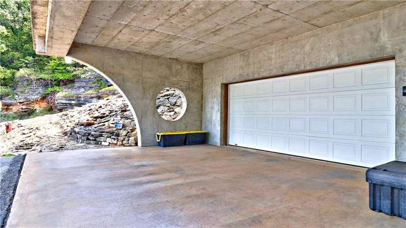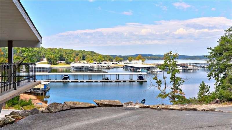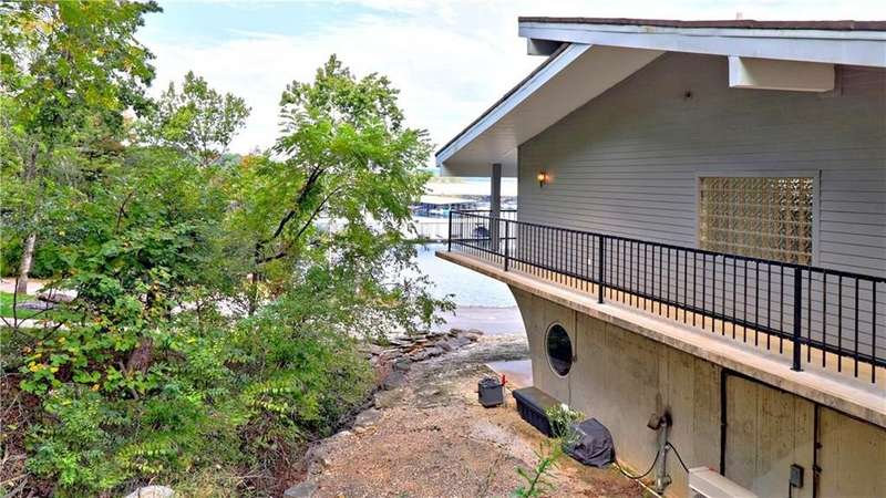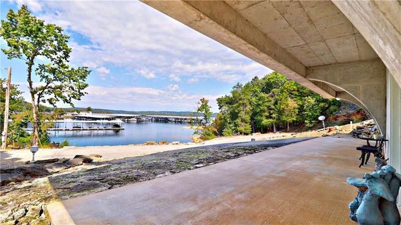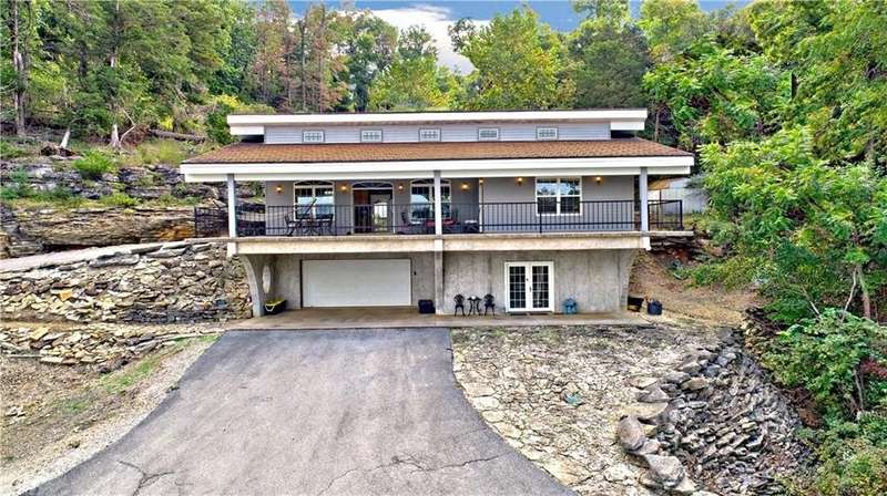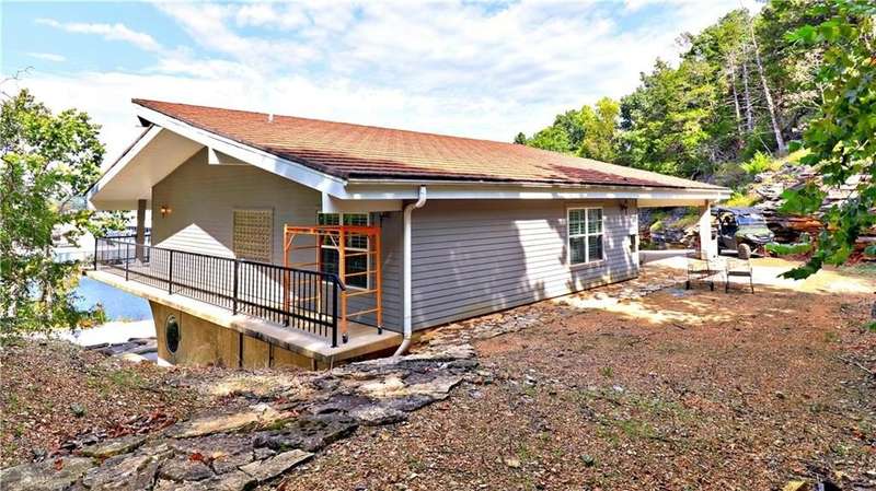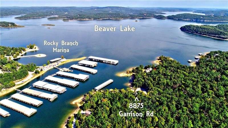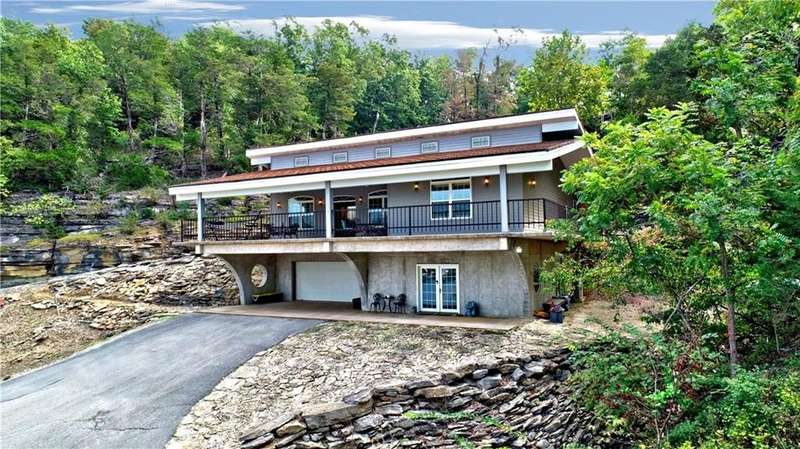 Lake Front! Amazing views of Beaver Lake!! Unique concrete cantilever home built to seamlessly blend with the natural hillside. Wrap around balcony designed to ensure amazing views any season. Vaulted ceilings and oversized windows to provide natural light on the main level. French doors off the great room and primary bedroom. Kitchen includes a ventless gas stove with multiple attachments built into the island. Tons for built-ins for extra storage. Paved driveway with a drive-in carport. Walk out, finished basement that includes a wet bar. Oversized 2-car garage is heated and cooled (not included in the sqft). Metal roof has galvalume tiles. Partial home generator with propane backup. An explorable cave on property for unique adventures. Minimal lawn maintenance. Flat walkable trails to lake shore. Approximately 89 ft of shoreline. Minutes from Rocky Branch Marina. Two parcels BCPID #18-00546-000, #18-00815-000 for 0.41 acres -/+. Designed for entertainment and privacy.