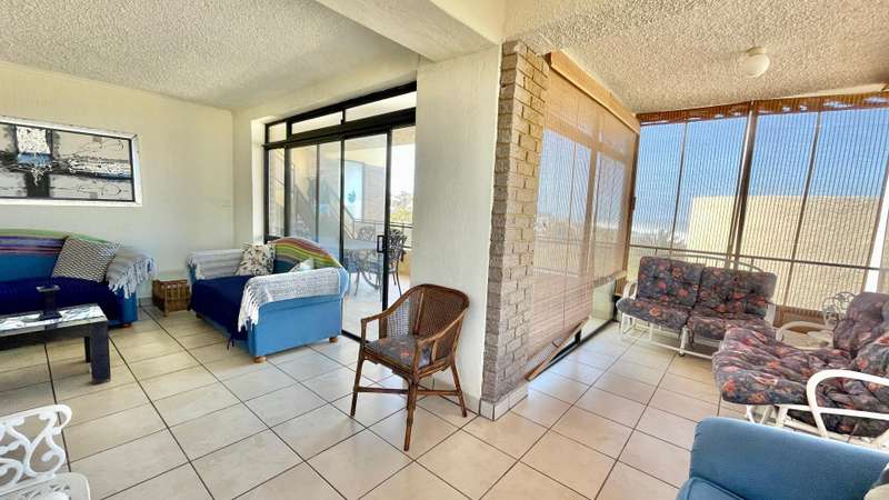 Well located penthouse with a roof top yard to experience beautiful sunrises and great sea views. This fully furnished apartment is light, bright and airy and has a sun room with large glass panels. Spacious open plan living area and tiled throughout with a modern kitchen. The communal swimming pool area has built in braais and there is direct access to the beach. Close to all amenities and within walking distance to the Uvongo Main Beach and St Michaels Beach. Undercover parking. This is a popular holiday destination. Perfect for "lock up and go" or for holiday letting. Well priced, call me to arrange a viewing at this great property.