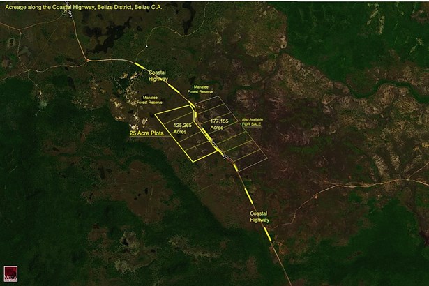 Expansive acreage is divided into 25 Acre Plots with vast development potential along the Coastal Road just 11 Miles (+/-) from the George Price Highway. These plots are sold for $125,000.00 USD each and is 20 mins. from Belize City and 15 mins. to the City of Belmopan.Resources of this land presents many possibilities and offers an opportunity for residential sites, commercial recreation development, agriculture, farm/ranch, etc. The area is quiet and in close proximity to important facilities. On the other side of the road, across from this land there is another acreage that can be purchased (same owner), of approximately 177 Acres for the affordable price of $5,000 USD/Acre or $10,000 BZD/Acre.https://www.belizerealestate.bz/property/expansive-25-acre-plots-along-the-coastal-road-with-great-development-potential/Property cultivates an ideal environment to create, enjoy and appreciate a peaceful, relaxing and rural lifestyle.Land is located near Mile 12, Coastal Road, Bocotora, Belize District, Belize