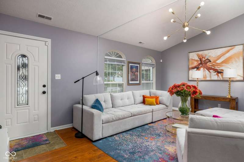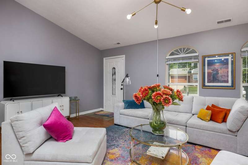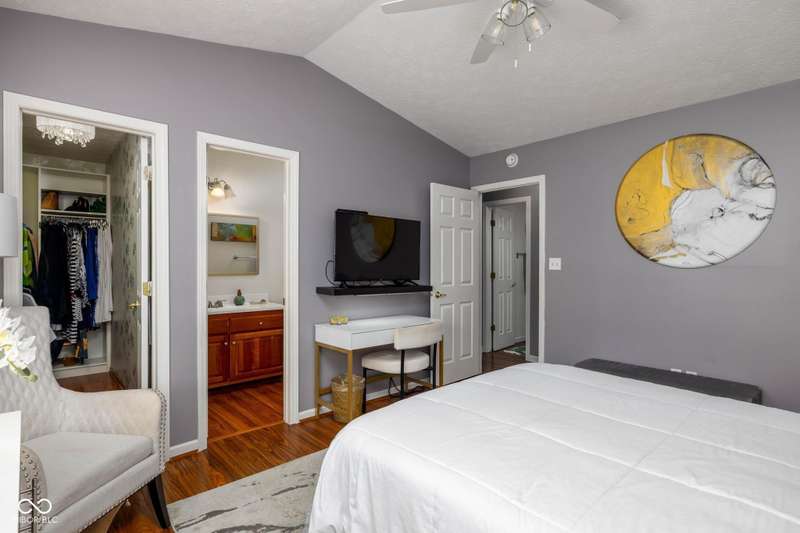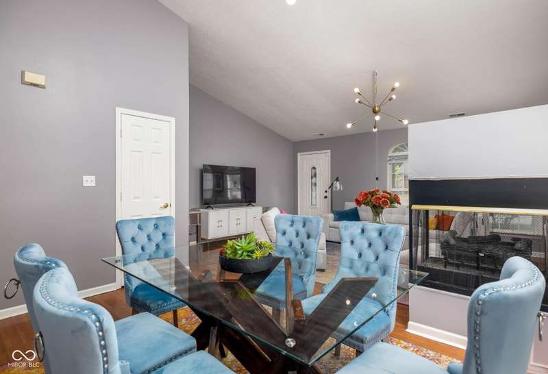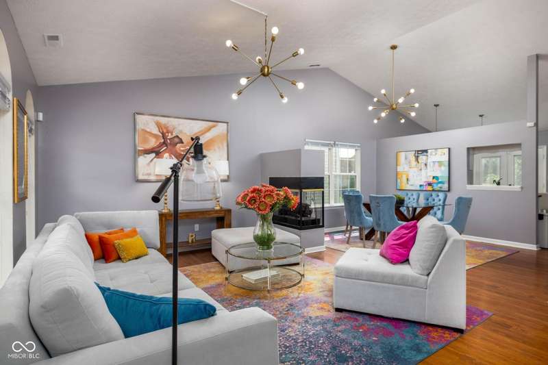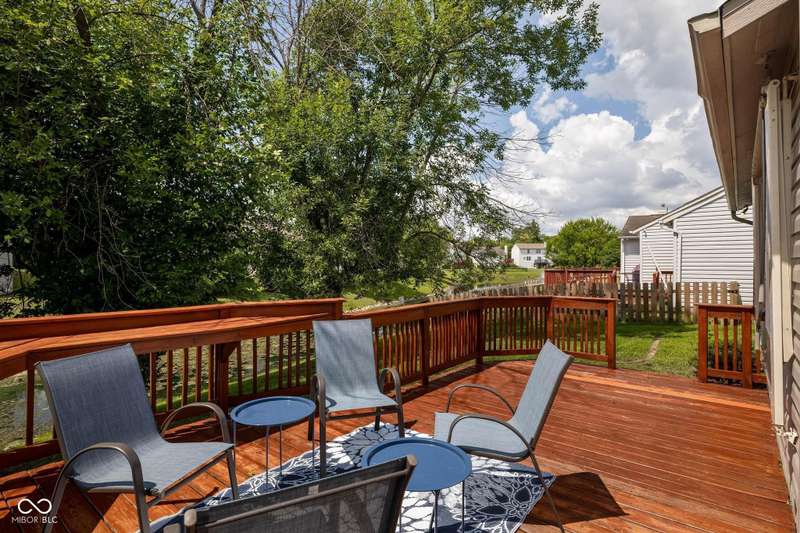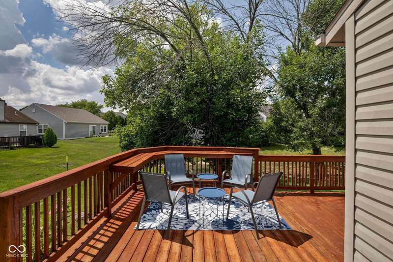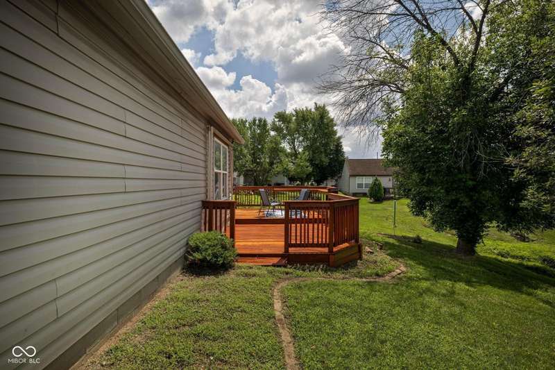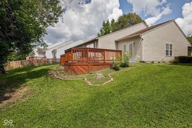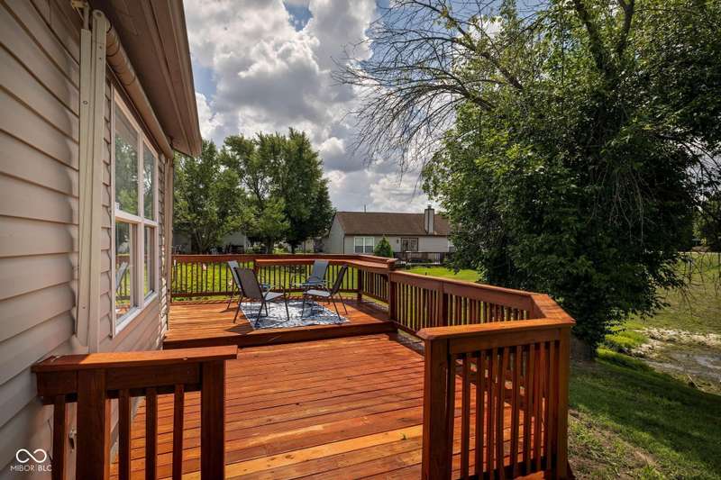 Welcome to this beautiful 3-bedroom, 2-bath ranch home in the sought-after Rivers Edge at Riverside Park neighborhood. From the moment you arrive, you'll appreciate the inviting curb appeal and charming front porch-an ideal spot to enjoy your morning coffee or wave to neighbors passing by. Step inside to discover an open living and dining area designed for both comfort and convenience. The two spaces are connected by a shared gas fireplace, adding warmth and character while creating a natural transition between the rooms. Large windows allow abundant natural light to fill the space, giving it a bright and airy feel. Whether you're relaxing in the living room or gathering in the dining room, this layout makes it easy to enjoy everyday living and special occasions alike. The kitchen is thoughtfully arranged with crisp white cabinetry, efficient workspace, and plenty of natural light. Its bright and cheerful atmosphere makes it both practical and inviting-a great place to prepare meals with ease. The primary bedroom offers a quiet retreat, complete with an ensuite bathroom and a walk-in custom closet for all your storage needs. Two additional bedrooms provide flexibility for family, guests, or even a home office, while a full hall bathroom conveniently serves these rooms. Step outside and enjoy the wonderful outdoor living spaces this home has to offer. The backyard features a patio and a large wood deck-perfect for hosting barbecues, entertaining friends, or simply unwinding after a long day. With plenty of room for outdoor furniture, plants, or play, this space is ready to be enjoyed year-round. Located in Rivers Edge at Riverside Park, this home combines charm, function, and convenience. You'll love being close to shopping, dining, and entertainment, with easy access to all the amenities you need. Don't miss your chance to own this lovely ranch home in one of the area's most desirable communities.