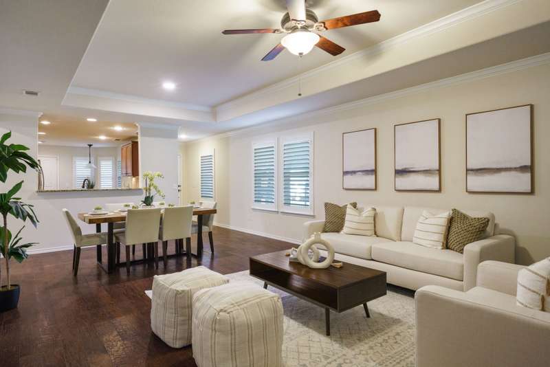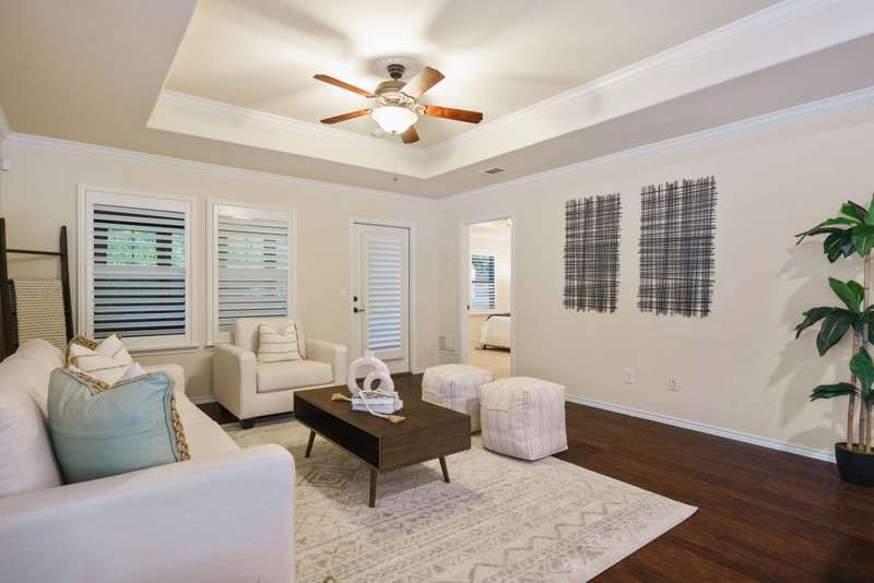 Nestled in the sought-after 55+ community of Frisco Lakes, this stunning home sits on a spacious corner lot directly across from a lush greenbelt, offering scenic views from both the front yard and backyard. Thoughtfully designed with two bedrooms and two full baths located on separate wings, this layout ensures privacy and comfort for residents and guests alike. The expansive great room serves as the heart of the home, combining the living and formal dining areas with rich wood floors and seamless flow into the kitchen. The well-appointed kitchen boasts granite countertops, abundant cabinetry, a pantry, new microwave, and a charming breakfast nook with a bay window framing peaceful views of the front yard. The large primary suite, situated at the back of the home, easily fits king-size furniture and features a spa-like bath with walk-in shower, dual vanities, and a generous walk-in closet. Guests will feel right at home in the secondary bedroom with its private full bath, and the nearby flex space offers endless possibilities as a study or additional living area. Off the great room, a professionally enclosed sunroom invites year-round enjoyment with a wall of opening windows, sleek epoxy floors, ceiling fans, a TV mount, and a door to the backyardplus a convenient dog door for four-legged family members. This property is loaded with peace-of-mind upgrades including a full-home Generac generator with auto transfer on natural gas and a 10-year warranty, a Class 4 impact-resistant roof installed in 2017, and a new AC system from 2021. Living in Frisco Lakes means access to truly exceptional amenities such as indoor and outdoor swimming pools, a state-of-the-art fitness center, golf course, tennis and pickleball courts, walking trails, on-site restaurant, and a vibrant activity calendar featuring clubs, classes, and eventsall designed to enhance an active and fulfilling lifestyle.