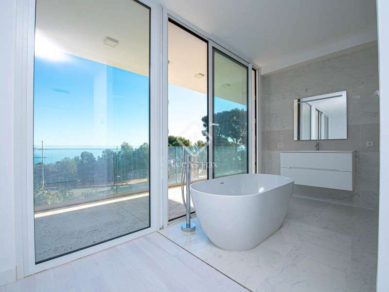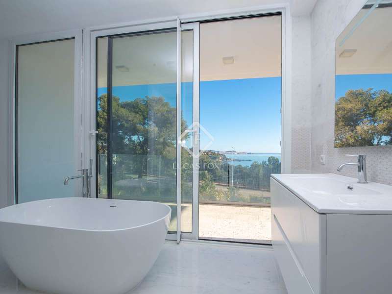Lucas Fox presents Villa Azul, a modern style villa with an area of 450 m² on a plot of 683 m². It is located near the Cala de Ses Torretes beach, between Sant Antoni de Calonge and the centre of Platja d'Aro, on the Costa Brava. Upon entering the property via stairs, we find the day area, which includes a large, very bright living-dining room with large windows and an open kitchen. From this floor, you access an exterior terrace with a large and sunny pool. On this main floor there is also a guest toilet and a ensuite bedroom with shower and sea views. On the upper floor , which is accessed by marble stairs, is the night area, with two bedrooms with private bathrooms, two double bedrooms and another bathroom with a shower. The main bedroom is especially spacious and has a shower and a bathtub. In addition, all rooms have access to a terrace with sea views. On the lower ground floor, there is a garage with space for two cars and a very large multipurpose room. There is also a separate room where the aerothermics heating and cooling machines are located, as well as the hot water boiler powered by solar panels. The garden is low maintenance and has a completely flat surface and a spacious terrace ideal for enjoying the sun and organizing family gatherings. All bathrooms are equipped with high quality materials and good finishes and the floors are made of white marble and parquet. You can access the beach in just five minutes. If you are interested in obtaining more information or arranging a visit, please do not hesitate to contact us.