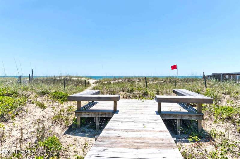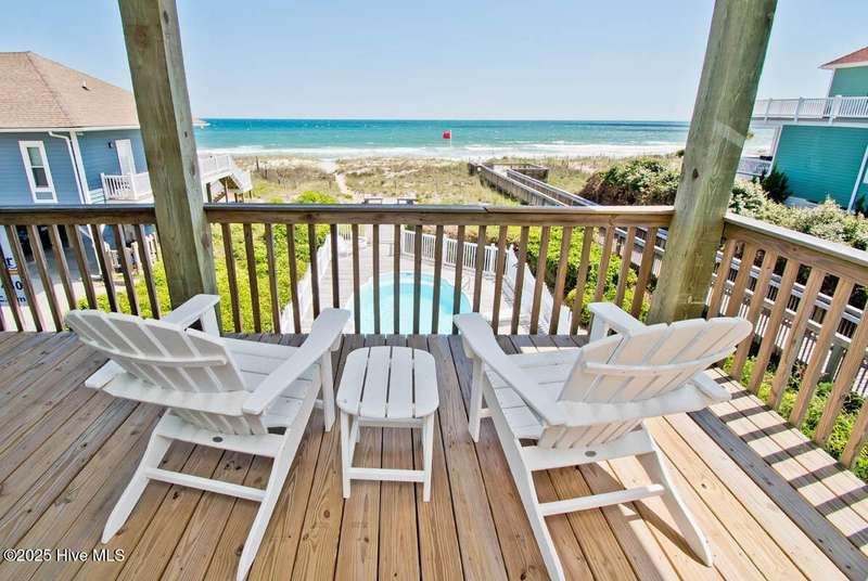 Discover Footprints - a FULL oceanfront duplex with an inground pool in the very desirable community of Ocean Oaks just off Coast Guard Road. A proven income producer & popular vacation rental hosting many families over the years. Six bedrooms plus two flex rooms, four full baths, and two half baths. The East side was renovated in 2019, while the West was renovated to closely match in 2023-24. LVP throughout, new kitchens during renovations, walls were moved, and the open great room floor plans were born. Updated bathrooms, deck boards, sliders, a roof extension to cover oceanfront porches, new roof - just a few of the many renovations and updates made over the past six years. 2025 improvements include new exterior paint, carport vinyl louvers, new pool furniture, new meter bases & more. Offered fully furnished. Landscaped with a sprinkler system in place. While both sides are legally set up as separate townhomes, the owner is selling as a whole duplex. The Townhome designation, however, would be beneficial if two parties were to purchase and each own a side individually. Know anyone? Each side has its own electric meter, water, septic, etc. Connecting doors on both levels allows for flexibility to rent as one large home OR two separate units. 2025 income $150,000+. See the MLS Documents for income, expense, improvements/updates information. Broker/Owner.