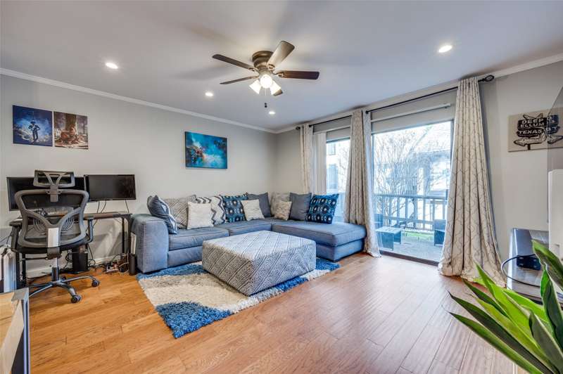 BACK ON THE MARKET. Buyer could not obtain financing. Seller has drastically reduced price and is now below market value. Stylishly Updated Condominium in the heart of Las Colinas Perfect for Lock-and-Leave Living! This property offers a unique opportunity to own a home in one of the area's most sought-after upscale communities. This tastefully updated 2-bedroom condo offers the perfect blend of charm and modern elegance. The open-concept living and dining areas boast natural light and you will find wood flooring throughout--no carpet here! The sleek kitchen features modern cabinetry, premium countertops, and stainless steel appliances. The adjacent utility space offers room for a full-size washer and dryer with a beautiful built-in area for a butler-style pantry. Both bedrooms offer spacious retreats while the baths have been beautifully updated. Relax on the patio downstairs or on the upstairs private balcony. Located just minutes from 114, DFW Airport, top dining, shopping, and entertainment. This property benefits from a higher HOA fee that covers a wide range of essential services and amenities, ensuring a low-maintenance, comfortable lifestyle, which reduces your monthly responsibilities. HOA dues include: structure maintenance and insurance, yard and grounds, pest control, gated and guarded entrance, security, water, sewer, trash, and full use of facilities including Club House, 2 Community Pools, and a Fitness Center. These services and amenities are designed to provide maximum convenience, allowing you to enjoy a low-stress lifestyle in this exclusive community. This property stands out from the crowd with its quality updates, prime location, and impeccable design. Schedule your showing today!