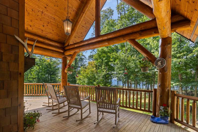 Perched above Lake Michigan, this home offers wooded privacy, endless sunsets, and a setting that feels both peaceful and inspiring. A scenic path leads to a bluff-top overlook, where the lake stretches out before you like a private show every evening. The large covered deck and expansive windows frame spectacular views of Lake Michigan, making it the ultimate backdrop for entertaining and relaxation. Inside, the design is warm and welcoming, with soaring ceilings, a floor-to-ceiling stone fireplace, custom hickory cabinets, and hardwood floors. The architecture showcases massive whole-log timbers and natural wood details, giving the home both strength and character. The main living spaces flow easily, with an open layout, a custom spiral staircase, and main-floor living for everyday convenience. The walk-out lower level adds a kitchenette, game area, and extra space for guests. Practical comforts are here too: natural gas heat, a backup generator, two laundry areas, and a two-car garage. Outdoors, you'll find a fire pit for evening conversations under the stars. Life here is about connection to nature watching eagles teach their young to fly, listening to the surf and wind in the trees, smelling wild leeks in spring, and soaking in the brilliant colors of fall. In winter, the quiet of fresh snow makes the setting even more magical. And when you're ready to explore, world-renowned Arcadia Bluffs Golf Club with three courses is just minutes away. Crystal Mountain, with its championship golf and winter skiing, is less than half an hour's drive. Beaches, marinas, and other adventures are all close at hand. This is more than a home it's a place where nature, comfort, and recreation come together with beautiful views of the lake. Shown by Appointment Only-No Drive-by Viewings Please.