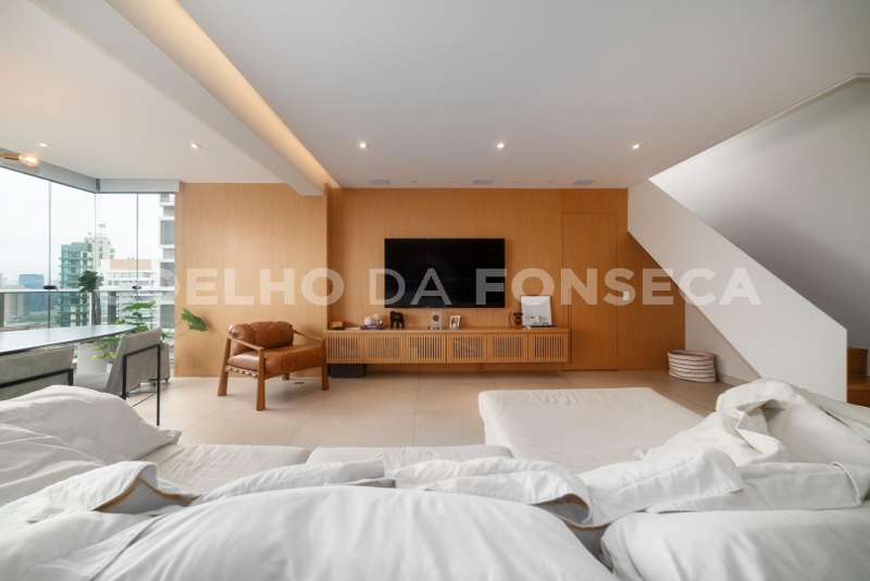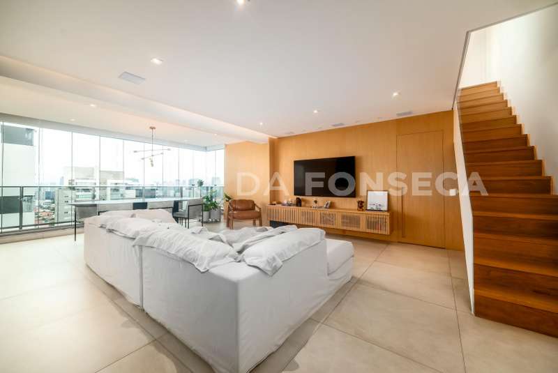 Cobertura no bairro Brooklin com 156m² área privativa/útil, 1 dormitório(s), 1 suíte(s), 3 vaga(s), 2 banheiro(s), churrasqueira, terraço, duplex, ar condicionado, reformado (a), varanda gourmet.