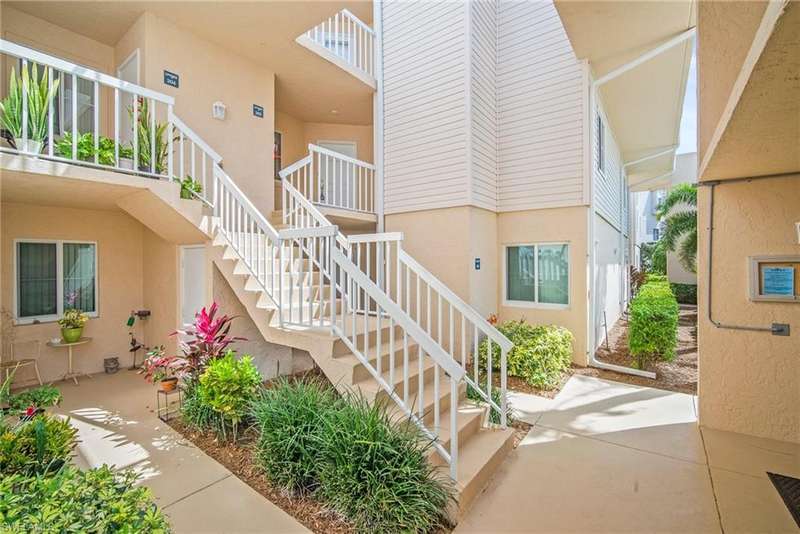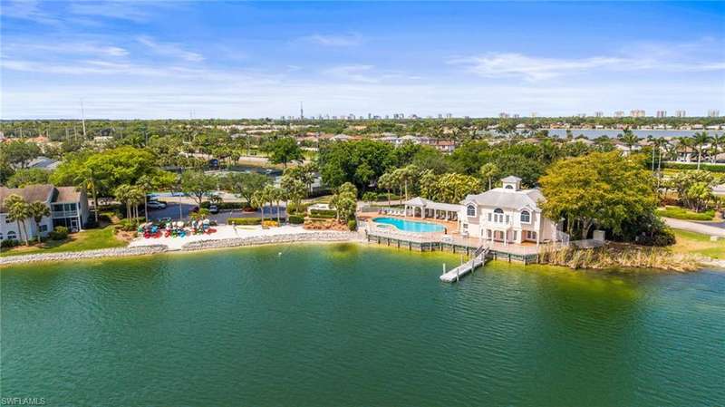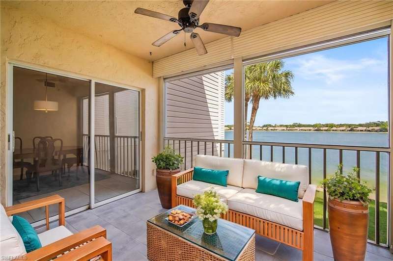 Enjoy serene lake views from this 2-bedroom, 2-bath, condo in sought-after Lakeside of Naples. This 2nd floor unit with 1,249 square feet of living space is bright and spacious with large sets of sliders and windows that allow lake views from nearly every room. Neutral tile and beautiful wood floors can be found throughout. A spacious kitchen features ample cabinetry and stainless steel appliances. The spacious primary suite offers an en-suite bath with dual vanities and a walk-in shower. Additional highlights include plantation shutters in both bedrooms, in-residence laundry, and a dedicated carport. Residents enjoy access to an array of amenities including billiard, bocce, a clubhouse with sauna, weight room, library and game rooms, two pools, a spa, tennis courts, shuffleboard, and basketball. Situated in the heart of Naples off Airport Road, quick access to top-tier dining, shopping, beaches and water access can be yours!