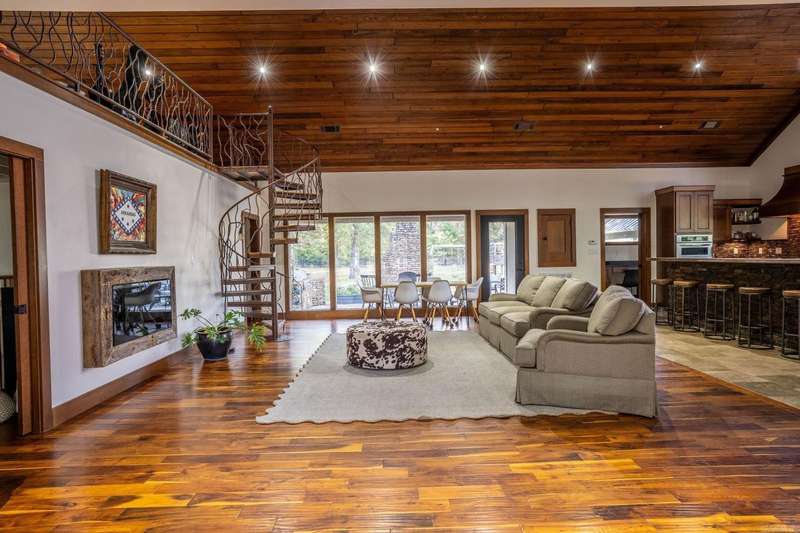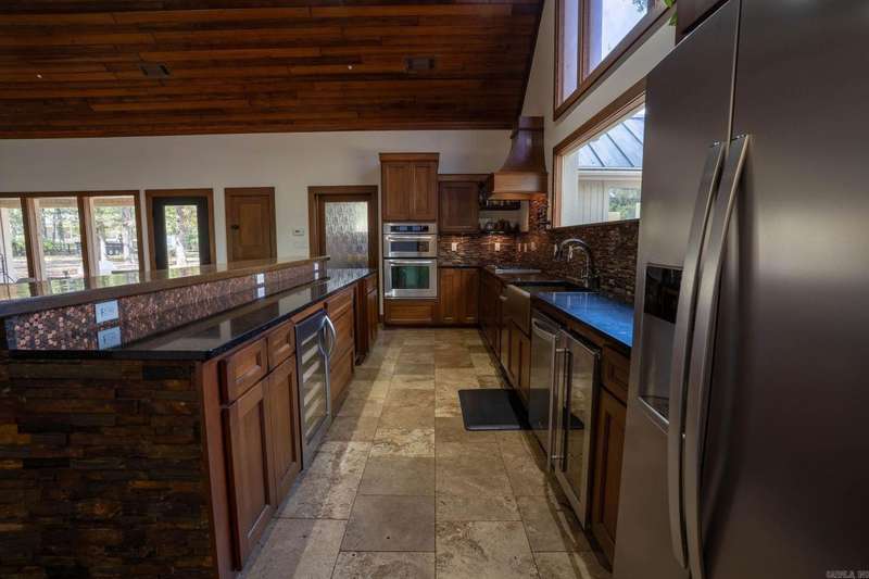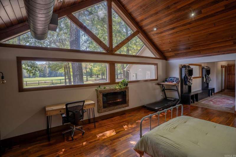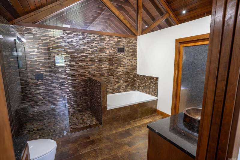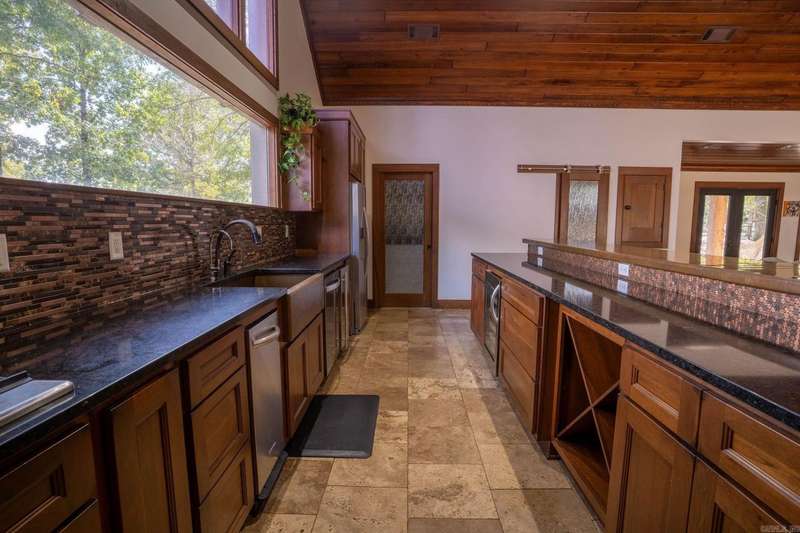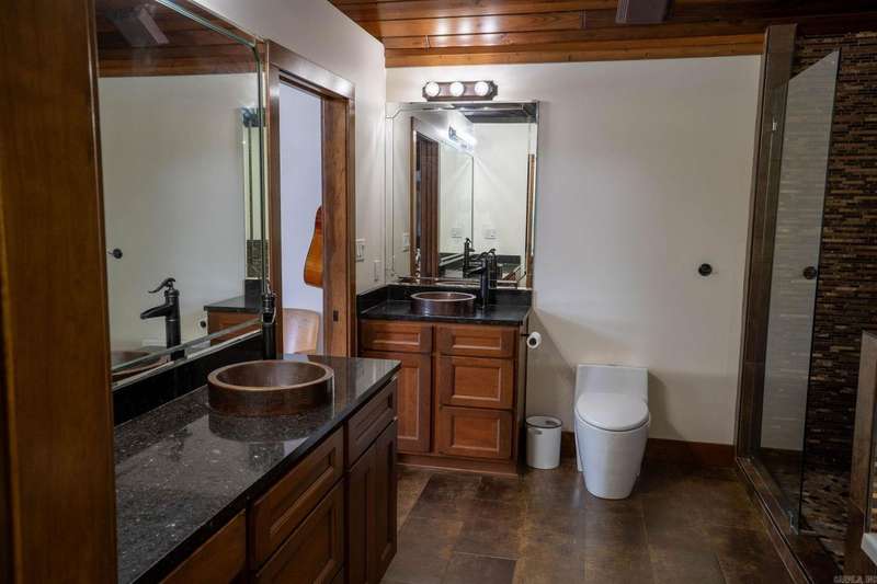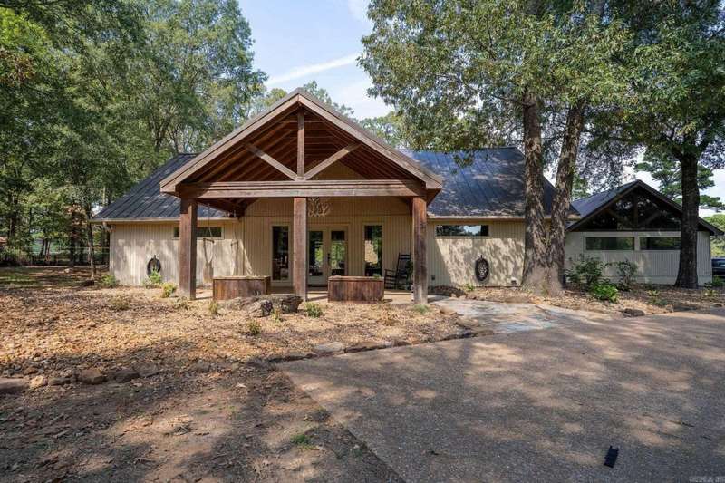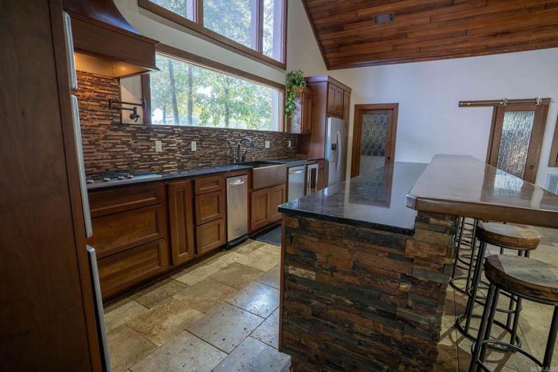 custom home on 2 unrestricted acres just 2 miles from Eden Isle Marina and Greers Ferry Lake, The floor plan encompasses 3 roomy bedrooms, and 3 and 1/2 bathrooms, a private balcony area, giving you just under 3,000 sf of spacious elegance! The interior includes custom valulted wood ceilings, wood flooring, two gas fire places, one in the master bedroom, The generously proportioned interior flows effortlessly from the open-plan living space to the multiple private patios perfect for family gatherings and entertaining. back patio is real stone and includes a natural stone dry stacked fire place, and a built in gas grill and sink, covered front porch. your dogs will love the 2 acres that is completely fenced with rod iron fencing and a security gate, see virtural tour and floor plan in pictures