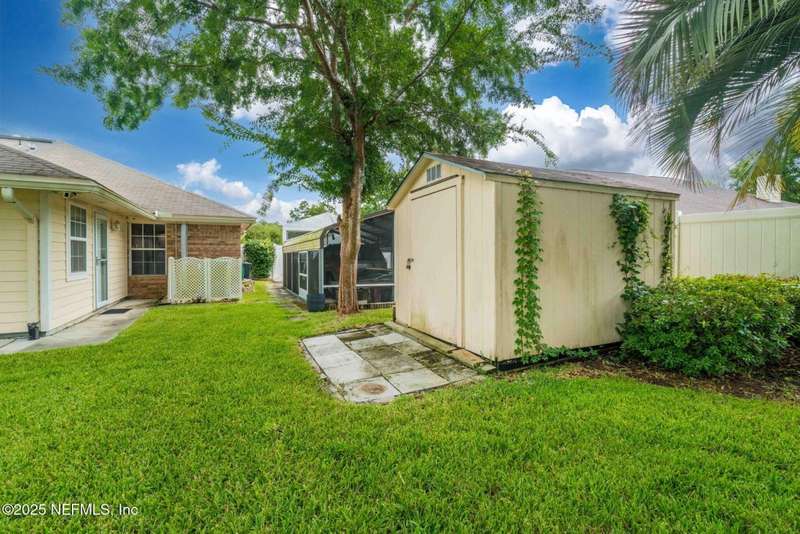 Beautiful 4BR/2BA home featuring a vaulted-ceiling family room with fireplace, sunroom, and spacious kitchen with granite counters and stainless appliances. Primary suite offers dual vanities, soaking tub, and walk-in closets. Enjoy a screened patio, fenced backyard with mature trees, and utility shed. Includes formal living/dining rooms, laundry with LG washer/dryer, and garage with workbench. Move-in ready with thoughtful updates throughout! See document tab for additional details.