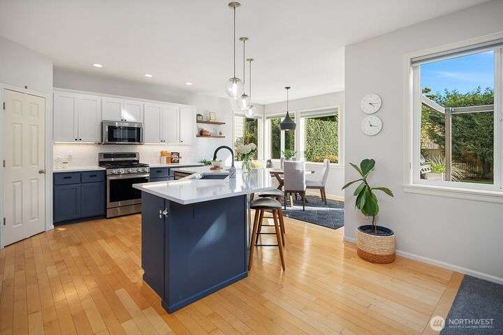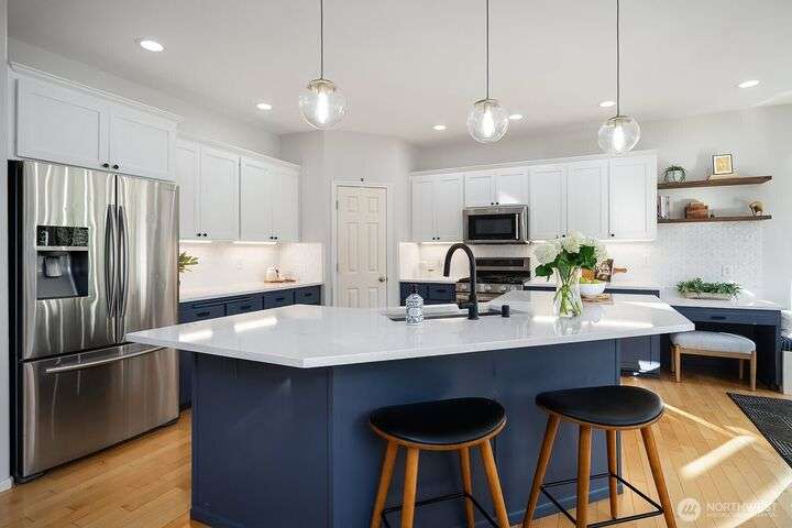 Nestled in one of the most desirable communities, this beautifully fully updated North-facing home welcomes you with a vaulted ceiling & light filled spaces. Thoughtfully designed, the open kitchen flows effortlessly into a spacious great room, while formal living & dining rooms provide the perfect backdrop for gatherings. Upstairs, a generous primary suite features an updated spa bath and walk-in closet, alongside three additional bedrooms a bonus room plus an den/office. Outside, enjoy a private backyard retreat, composite deck, hot tub, cand overed area for year round enjoyment. Just moments from parks, trails, and shopping. Easy access to tech hubs in Redmond, Bellevue, and Seattle makes commuting a breeze. Top-rated Smith Elementary.