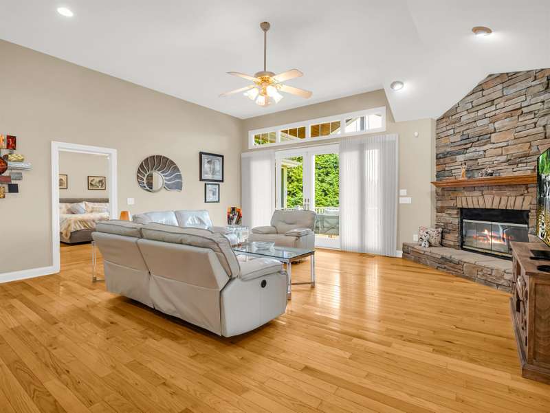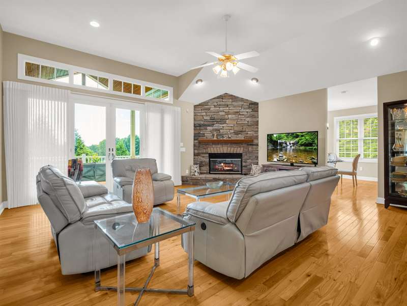 Elegant and spacious 3-bedroom, 3-bath residence nestled within the sought-after gated community of Kenmure in Flat Rock. Situated on a private and beautifully landscaped 0.83-acre lot, this well-appointed home offers approximately 3,137 square feet of thoughtfully designed living space. The main level features an open floor plan with vaulted ceilings, rich hardwood floors, and a striking floor-to-ceiling stone fireplace that anchors the great room. The gourmet kitchen is equipped with granite countertops, stainless steel appliances, and generous cabinetry?ideal for both everyday living and entertaining. The primary suite is a serene retreat with dual walk-in closets and a spacious en-suite bath. A flexible room on the main level provides options for a guest room or home office. The lower level offers a comfortable family room with fireplace, an additional bedroom and full bath, plus a light-filled office or hobby space. Located in the Kenmure Cottages section. Residents enjoy the privacy of a gated setting along with security. Optional club memberships offer access to golf, fitness, tennis, and more.