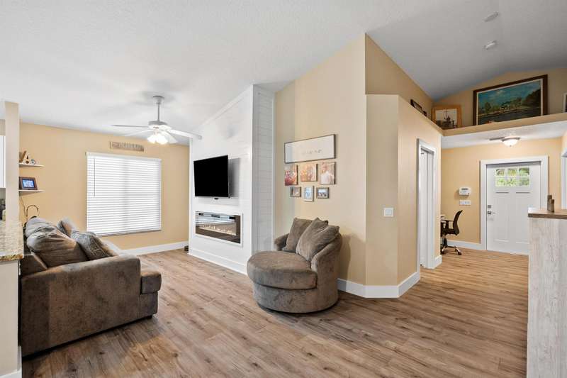 Solid concrete home with new Metal Roof, Impact windows and doors, located in the family friendly neighborhood of River Forest! Zoned for Crystal Lake, Anderson Middle and South Fork High. You must see this well maintained home with new laminate flooring and new interior and exterior paint. Move in ready on a corner fenced lot for added privacy, as you relax on the brick paver patio with built in fireplace. River Forest offers a community pool, fitness center, basketball courts, boat and RV storage and clubhouse available to rent for holiday gatherings, birthday parties and more.