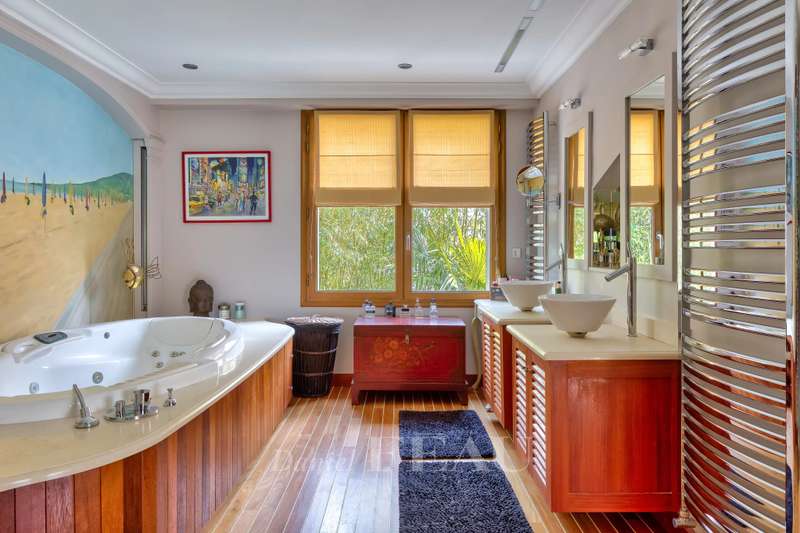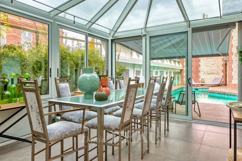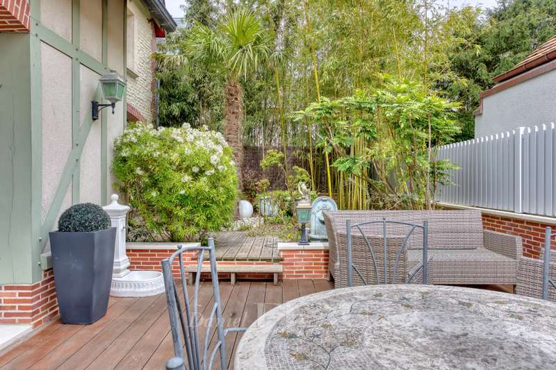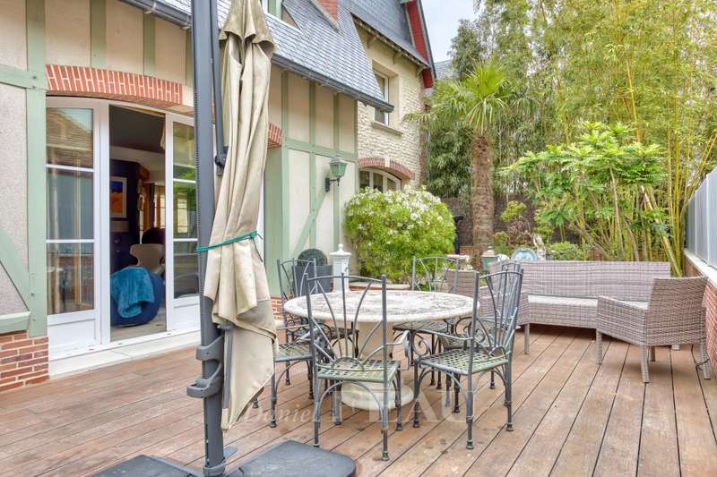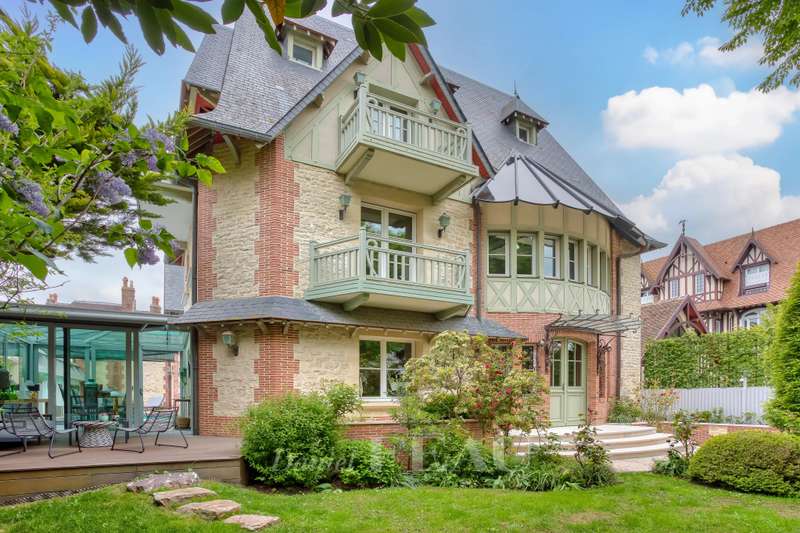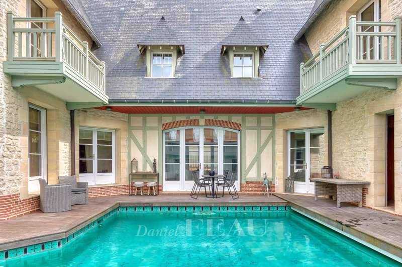 This recent architect-designed villa is in a peaceful location a stone’s throw from the boutiques and the beaches in the heart of Deauville. Equipped with a lift and offering 500 sqm of beautifully appointed living space, it includes an entrance hall featuring a soaring ceiling, a beautiful living/reception room and dining room with a fireplace, an equipped kitchen and a study. Upstairs are two bedrooms with bath/shower rooms, and a master suite with a bath/shower room opening onto a balcony. The top floor comprises a further bedroom with a bathroom, and a fitness room. On a basement with a 140 sqm garage for up to five vehicles, a fully fitted air-conditioned wine cellar, technical premises, and a lift accessing up to the first floor. The enclosed 780 sqm landscaped garden features a swimming pool, a terrace and a sauna with a shower. A rare opportunity in the heart of the Normandy coast’s internationally-renowned resort. Fees at the charge of the vendor. Information regarding the environment is available on http://www.georisques.gouv.fr In accordance with the TRACFIN law, proof of identity shall be required for all visits.