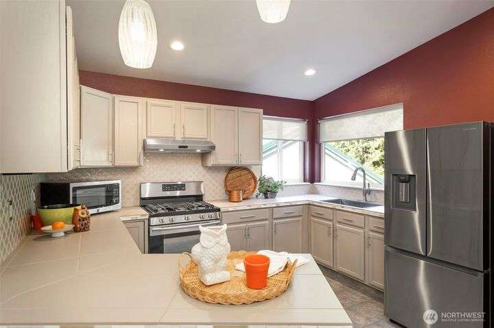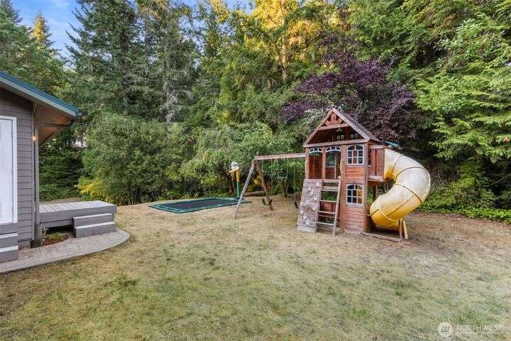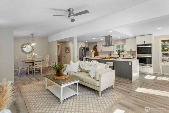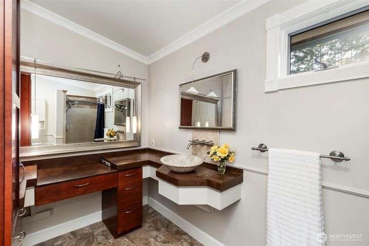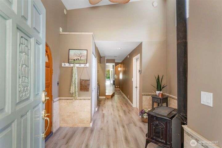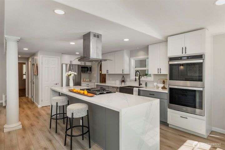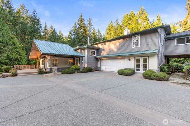 Experience flexible living at its finest w/an impressive 2.6-acre custom estate. 1 level main home w/quality finishes; hardwood, tile, granite, quartz, tongue in groove ceilings & handsome millwork. Professional remodel of main level includes a center island w/solid quartz waterfall counters, stainless appliances, & new cabinetry. Upstairs, a wing with a 2nd kitchen & 2 baths is ideal for multi-generational living or guests. Self-contained detached apartment sits above a large, heated shop. All 3 units offer separate, fully equipped living spaces, & could be used for long or short term rentals. Elevator access to the upper level. Minutes from both Kingston & Bainbridge ferries, & downtown Poulsbo, w/schools, restaurants, shopping.