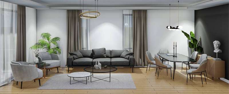 Elegant real estate is offered for sale in different types are large and spacious. Kitchen appliances, air conditioning, and combi boiler are included in the real estate price. Real estate with underfloor heating has a large balcony, dressing room, and en-suite bathroom.