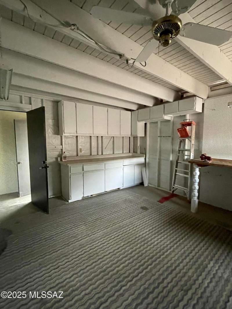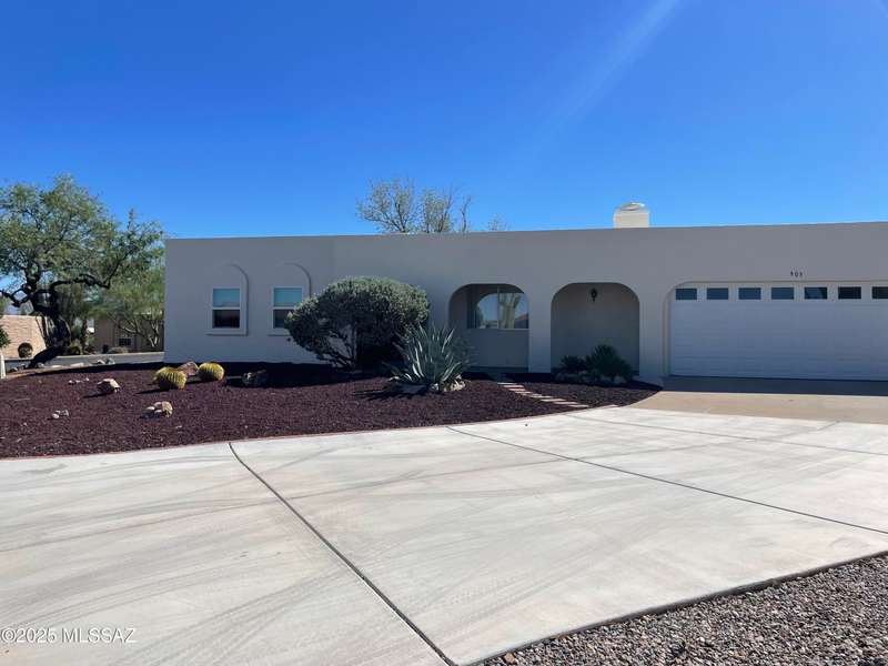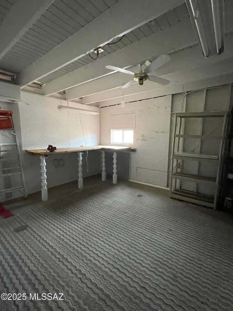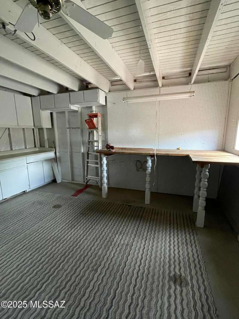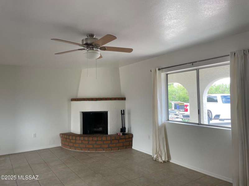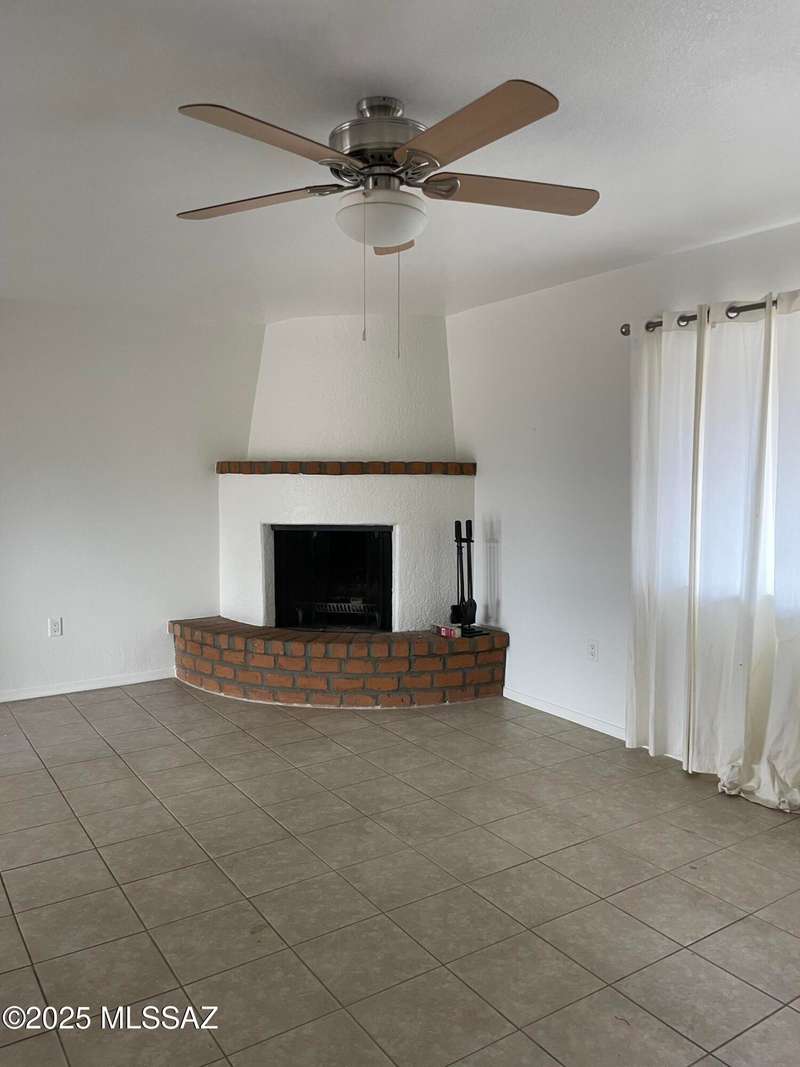 Honey, stop the car! This property is ready to move in. Property painted inside and outside. Remodeled kitchen, open and airy. Breakfast bar, new microwave, new countertop, Kitchen appliances' stay. Dining area flows out to covered patio. Great spot for barbequing. Living room with beehive fireplace. Ceiling fans throughout. Home all tiled. Stunning location on quiet secluded circle. Fantastic view of Santa Rita Mountains and Elephant Head. Guys! The workshop is meant for you and your hobbies or increase the square footage by securing permits to finish interior. This can become a bonus room, bedroom, or TV room. Carport recently converted to a garage. Additional driveway has been cemented. We love winters in GV or stay all year long!