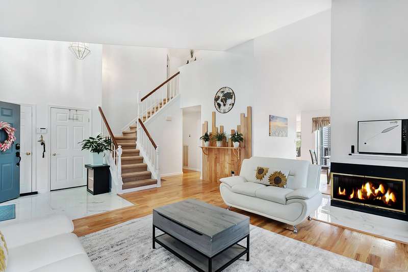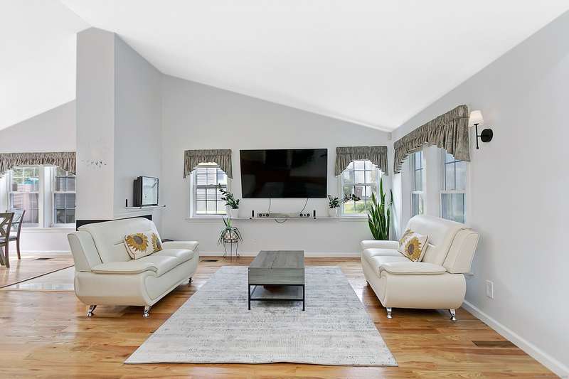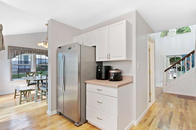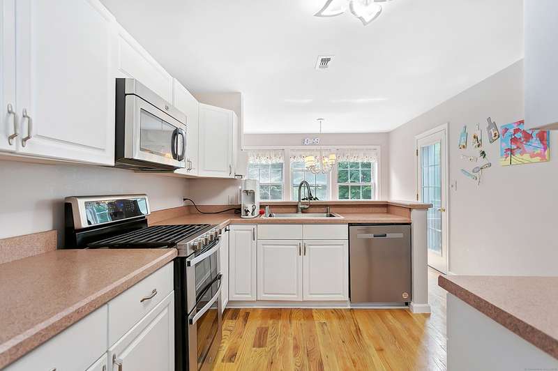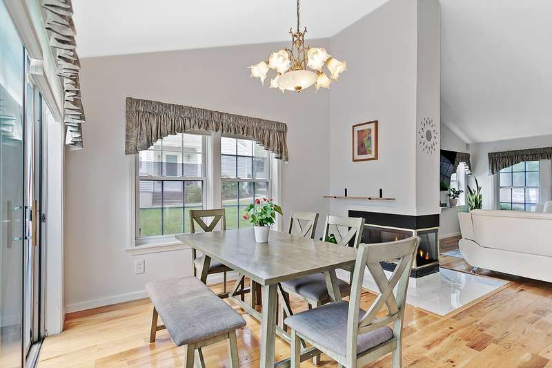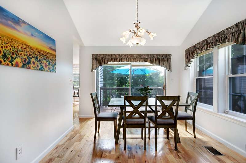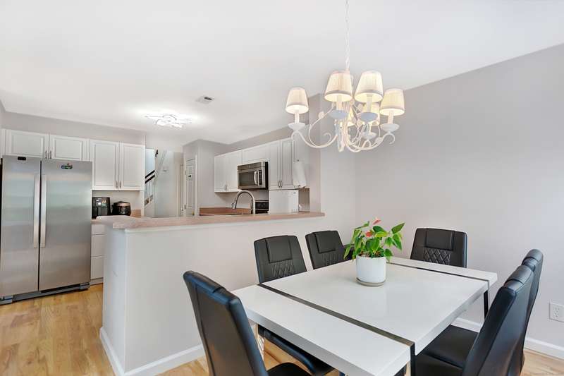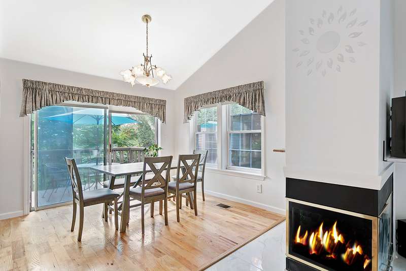 Great condition of town house at the end unit in desirable location. Main level offers cathedral ceiling. Double fireplace between dining and living rooms. eat in kitchen with outdoor deck accessible through dining and eat-in kitchen. South facing eat-in kitchen dining and master suit windows to maximize direct sun light throughout the day. powder room and laundry room are on the first floor. first floor master suit with generous walk-in closet. the upper level offers two bedrooms with plenty of closet space with a full bath and closet. 1300 sf of lower level with wet bar can be home office, gym, playroom or family room. one car garage with lots of parking spaces, 2 private swimming pools and club house. Sale of seller finding a suitable housing,