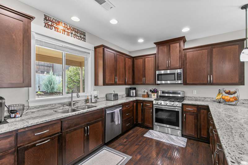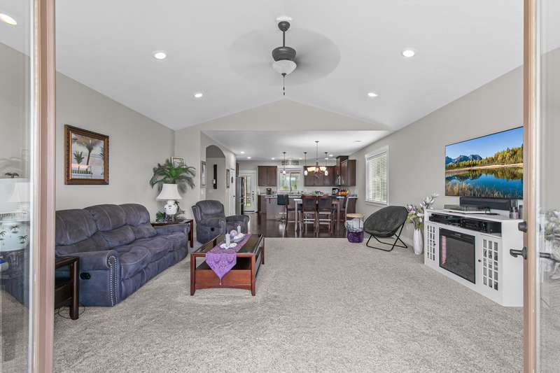 CUSTOM BUILT HOME IN EAGLE RIDGE Welcome to this well-crafted custom 1910 square feet home in the desirable Eagle Ridge subdivision. Step inside to find a spacious great room with impressive vaulted ceilings that create an inviting and open atmosphere. Enjoy beautiful views from your private covered front deck—a perfect spot for colorful evening sunsets with family or friends. The generous master bedroom features convenient dual sinks, a stylish tile shower, and a walk-in closet. The private backyard includes a comfortable covered area for entertaining and outdoor living. Practical features include extra parking by the garage and a sturdy garden shed for all your tools and equipment. All this located on .20 acre with no HOA fees and located just minutes to the Robert Trent Designed Golf Course. This appealing home combines comfort and functionality in a sought-after Eagle Ridge location. Call today to schedule your viewing!
