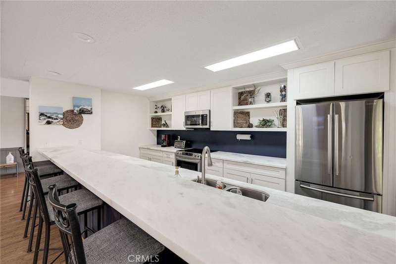 Experience top-floor, resort-style living in The Estates, where every day feels like a vacation. This remodeled penthouse condo offers the perfect blend of privacy, comfort, and refreshed finishes. Tucked in one of the most desirable locations within the community, this condo enjoys a peaceful setting, away from the road and pool, with a serene vantage point overlooking lush, manicured landscaping and mature trees. Step inside to discover thoughtful upgrades that elevate everyday living. The kitchen and bathroom feature tastefully updated cabinetry, granite countertops, and SPC luxury vinyl flooring, while newer designer light fixtures add a sophisticated, modern touch. Fresh white paint, wide baseboards, newer white blinds, and white oak style laminate flooring create a neutral yet elegant canvas, ready for your personal style. Bathed in natural light and cooled by an incredible breeze, this special home takes full advantage of its top-floor location with sliding glass doors in the living area and both bedrooms that invite the outdoors in. The open-concept living space seamlessly extends to a spacious private balcony, ideal for morning coffee, al fresco dining, or entertaining guests amongst the trees. The well-equipped kitchen includes a range, refrigerator, and a newer dishwasher for your convenience. Both bedrooms feature sliding glass doors to the balcony and generous walk-in closets. Your primary suite includes a private en-suite bath, while a second full bathroom accommodates the secondary bedroom and guests. Storage is plentiful throughout, making it as practical as it is polished. Beyond the unit itself, The Estates community offers an enviable selection of amenities: unwind in the sparkling pool, spa, and sauna, host gatherings in the recently renovated clubhouse, stay fit in the on-site gym, or enjoy friendly matches on the tennis courts, all surrounded by thoughtfully landscaped grounds with tranquil waterfalls and supported by on-site security. Situated within the award-winning Palos Verdes Peninsula Unified School District and just minutes from premier shopping, dining, and entertainment, this condo is not only move-in ready, it is your key to a relaxed, upscale lifestyle.