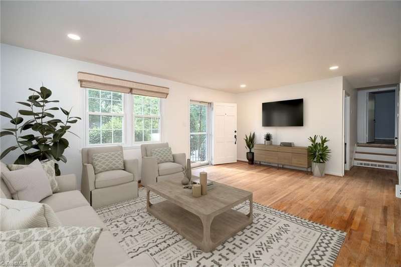 Charming home in a most convenient location. Inside, this home is in move-in condition with some appealing updates to the kitchen & baths, lighting & window treatments, carpet & paint. The lower level Den is a relaxing retreat and has office space w built-in shelves. Set up your workshop in the unfin basement where you will also find pleanty of storage. Step outside into a backyard oasis, fully fenced with a nice lawn and mature trees. It's the ideal space for entertaining, gardening or just relaxing on the patio. Experience the retail and dining of Battleground Ave area, and easy access to Bryan Blvd, Friendly Center and Downtown. Outdoor enthusiasts will love being close to local parks and trails. Convenience, comfort and a great yard!