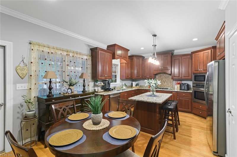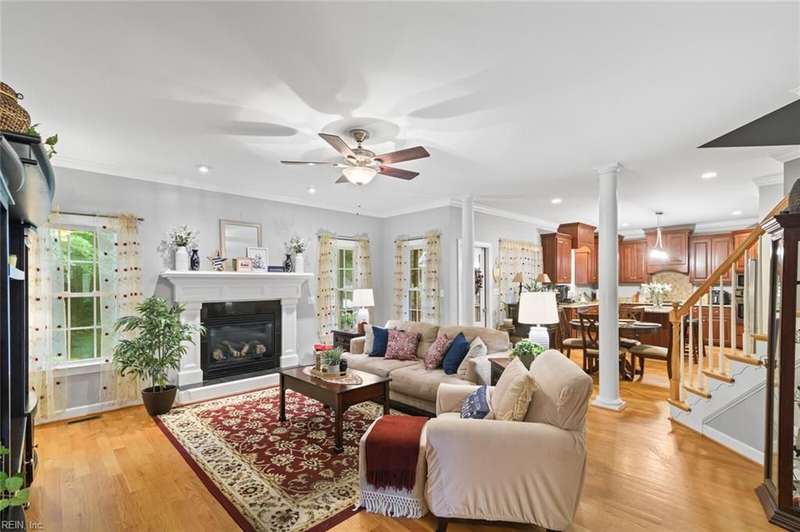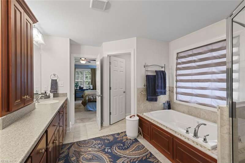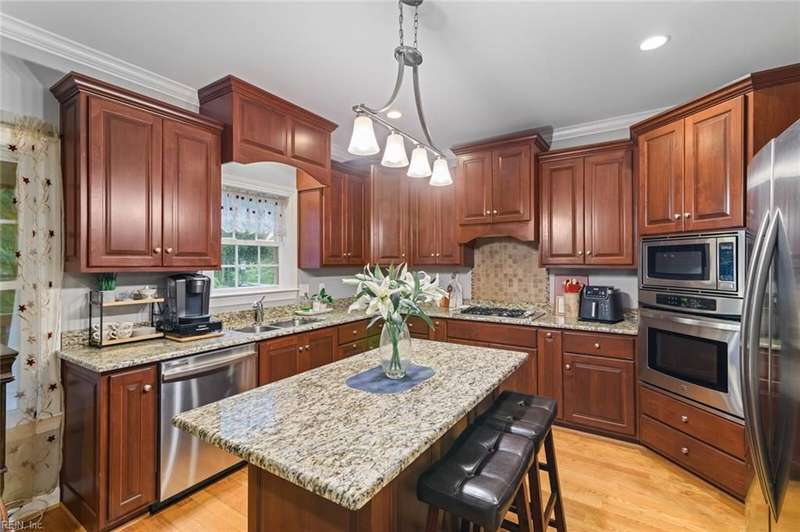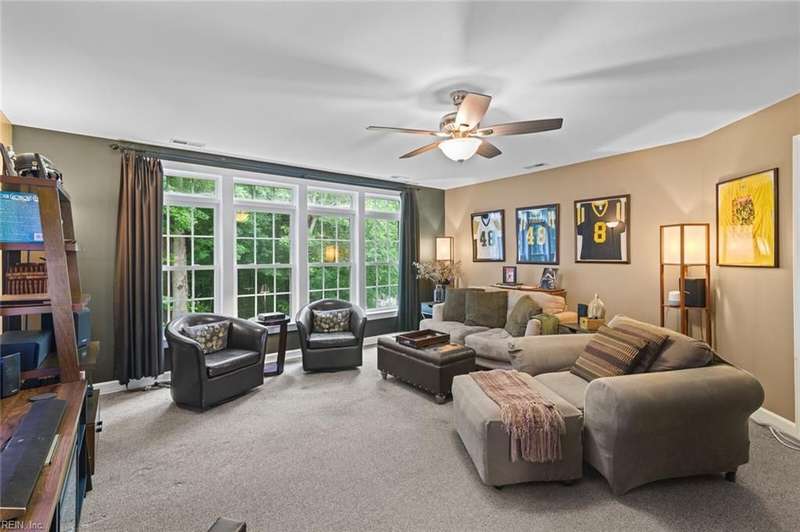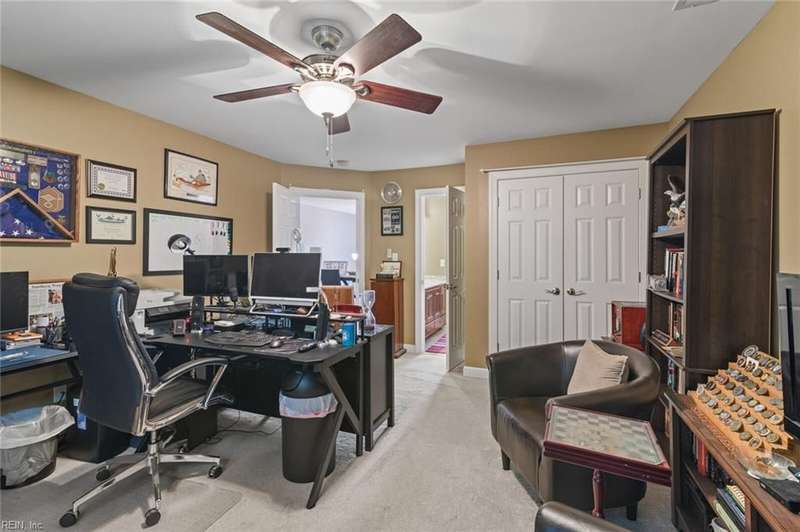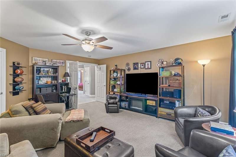BIG PRICE REDUCTION!! This home simply defies description. 3200 SF, five bedrooms, four full baths, first and second floor primary suites. Formal living and dining rooms, large family room with fireplace, large ear-in kitchen with gas stove and plenty of cabinet space. Spacious media room on second floor. Partially screened in two tier deck. Large detached paved brick patio. Dual zone heat and air. Has plenty of amenities in neighborhood. NASA. LAFB and schools nearby.