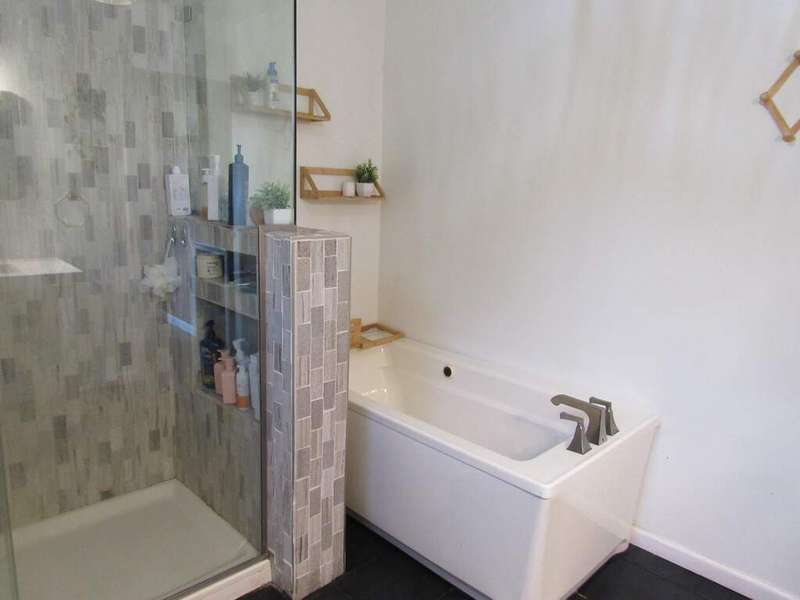 All of the major projects have been completed on this full remodel, all it needs are the finishing touches! The main level has an open floorplan with a large living room with bow window and is ready to go for a woodstove to be installed, eat in kitchen has new appliances, cabinetry and granite counter tops. The laundry room is conveniently located off the kitchen area. The primary bedroom has a half bath, but the shared bath is a show stopper with its tiled shower with glass doors, pedestal sink and fabulous Kohler jetted tub. Upstairs you will find two additional bedrooms. The vinyl siding, gutters, roof, tankless water heater and HVAC system are all new. Septic tank is approximately 4 years old.