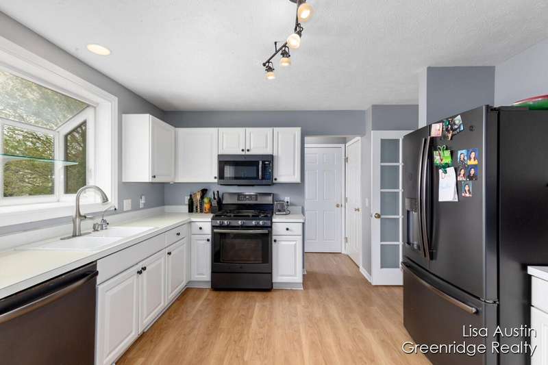 Don't miss this great home in Caledonia! The main floor consists of an open concept kitchen/living room w/fireplace. dining room/office, 1/2 bath and laundry room. Upstairs you get a large master suite, 3 bedrooms and a full bath. Basement has a large rec room, full basement, water softener, RO system, tankless water heater, zoned heating/cooling, a large composite deck, underground sprinkling, outdoor shed and a fenced yard. This home has an extra deep 2 stall garage.