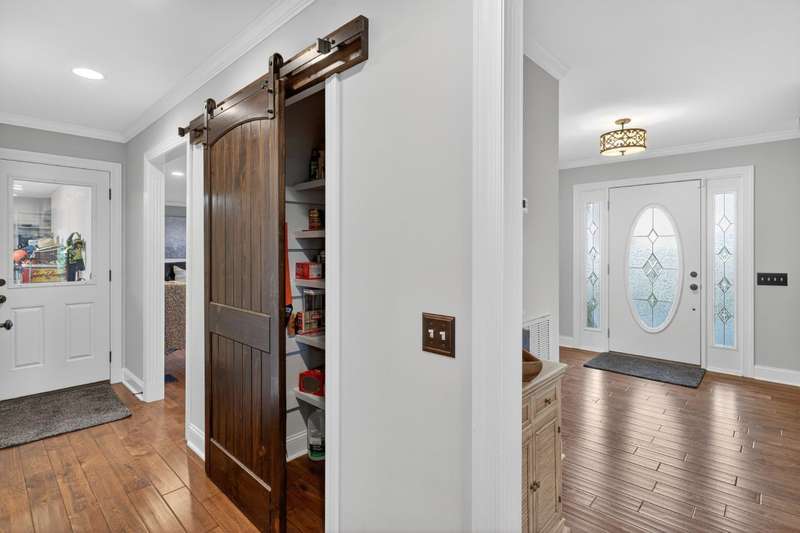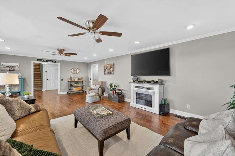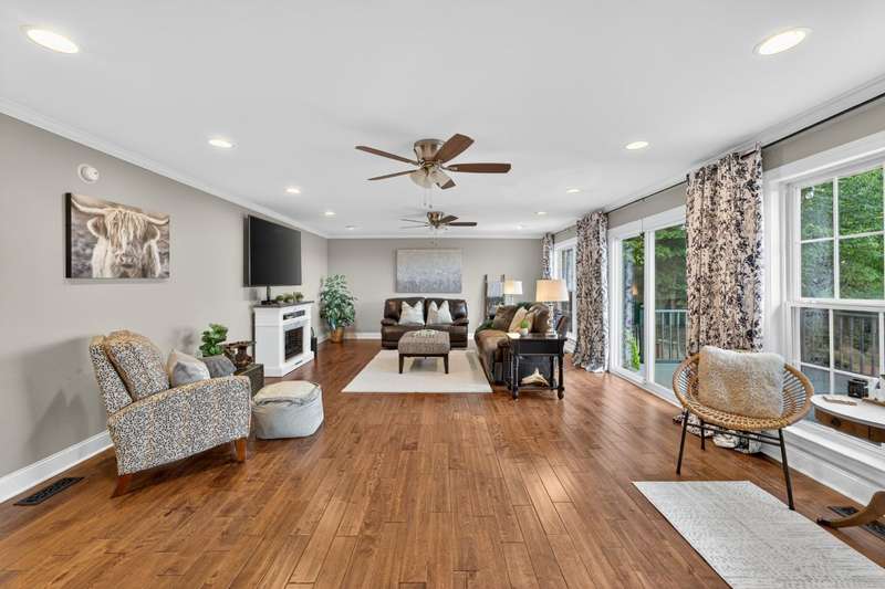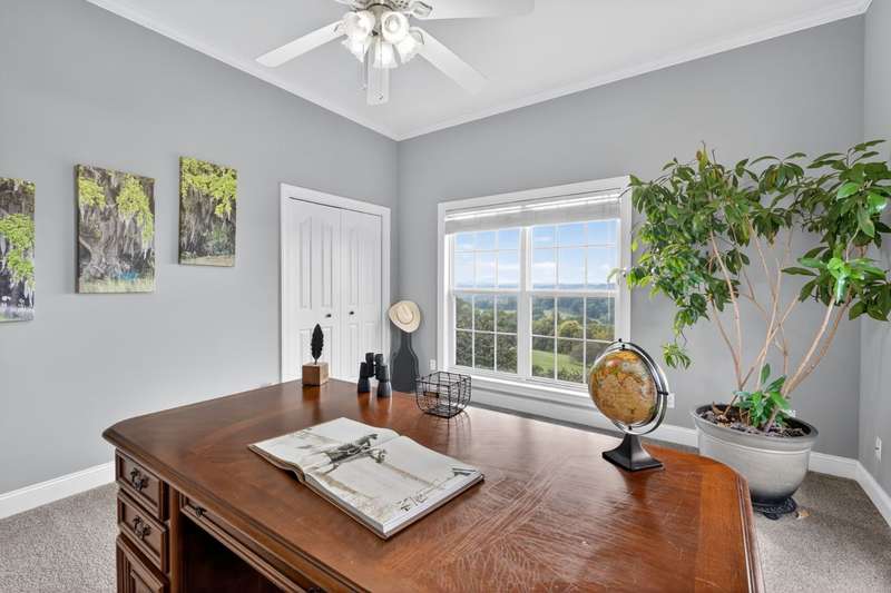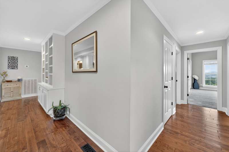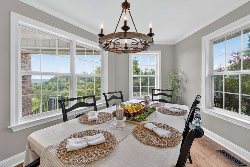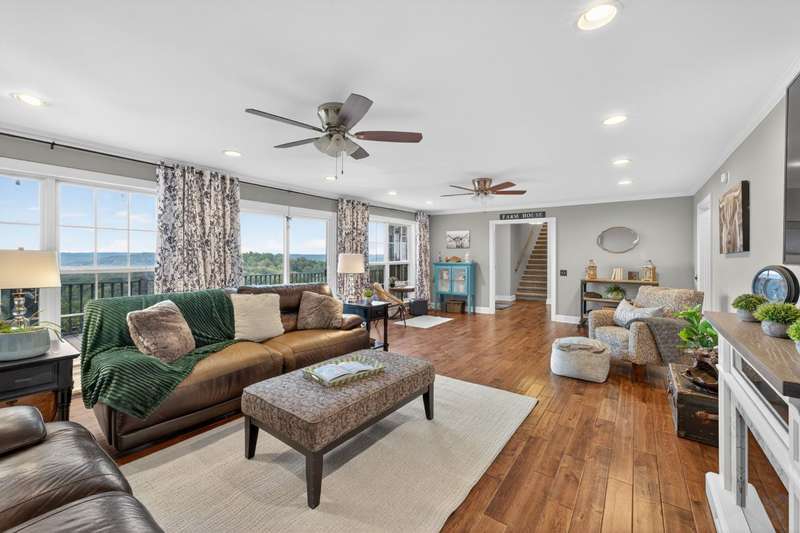 Panoramic Views & Spacious Living - all just minutes from town & conveniences! Nestled on 3.85 serene acres with sweeping views of rolling hills this beautifully maintained 3-bedroom, 2.5-bath home offers 3,614 sq ft of thoughtfully designed living space. The main living area features rich birch finished floors & an extra-large living room with glass doors that open directly onto one of three expansive decks-perfect for entertaining in front of the breathtaking views. The kitchen is a chef's delight with quartz countertops, SS appliances, gas range, custom cabinetry, recessed lighting, a central island, plus a microwave peninsula. A bright dining room, lined with windows & grilling deck access, is east-facing letting you enjoy every sunrise. A custom 1/2 bath with walnut top & cherry base adds additional charm. Two bedrooms down share a large bathroom & boast 10-ft ceilings & more hillside views-one with direct deck access. Step upstairs to the luxurious, private primary suite featuring a large walk-in closet, additional dressing room/flex space, & a spa-inspired bath with dual granite vanities, & walk-in tile shower. A walk-out attic & hall closet offer even more storage. The framed-out basement offers Lifeproof laminate flooring, is plumbed for a FULL bath, & ready for finishing-plus French doors walk-out to a 4-person hot tub & the show-stopping viewing deck. Well maintained from the fresh gravel driveway w/sensor alarm & motion lighting, to the sealed aggregate, & painted deck at the front door. Enjoy the country while still having modern conveniences like high-speed internet, can lights, smooth ceilings, & crown molding throughout. Additional features include lush new carpet upstairs, a 2-car garage with storage & insulated 18ft door, additional parking pad, new HVAC for downstairs, termite protection plan, & mature landscaping featuring hydrangeas, peonies, lilacs, & more. Don't miss your chance to own this breathtaking home & spend summers at Normandy Lake!