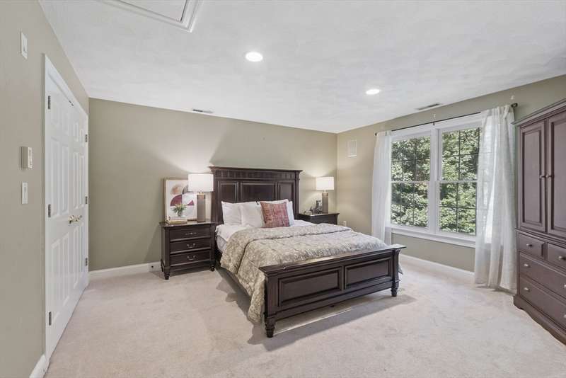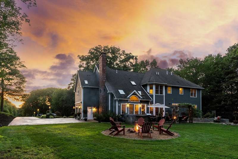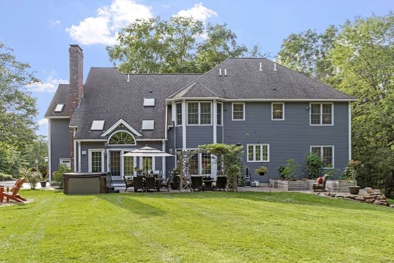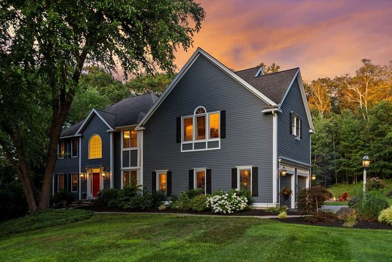 Set in a picturesque West Boxford cul-de-sac, this spacious Colonial offers elegance and comfort throughout. A newly built brick staircase welcomes you into a dramatic double foyer with marble flooring. The Home Office, Formal Living Room & Dining Room feature HW floors w/mahogany inlays, crown molding & abundant natural light. An expansive Kitchen opens to a sun filled Family Room--w/ a stunning floor to ceiling stone (wood burning) FP--both with sliders to a private patio for seamless indoor-outdoor living. Retreat to the luxurious primary suite with a gas FP, huge walk in custom closet and spa-like bath. Upstairs offers 3 additional bedrooms (one with its own full bath) and a convenient 2nd floor laundry. It's possible that the outside is more beautiful than the inside, with magnificent plantings and garden boxes. Surround sound inside and out enhances every space. Prime location 1/2 mile from Stiles Pond, & just 10 minutes from I-95 and I-495. More features listed separately.