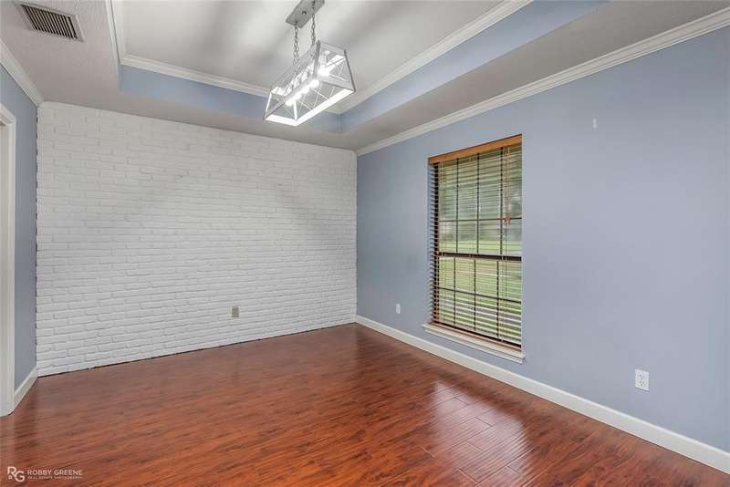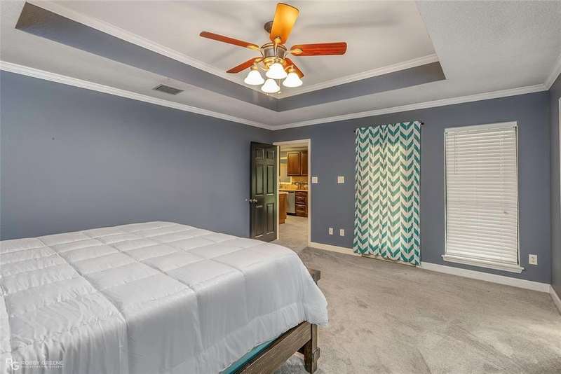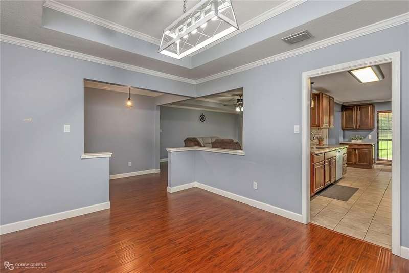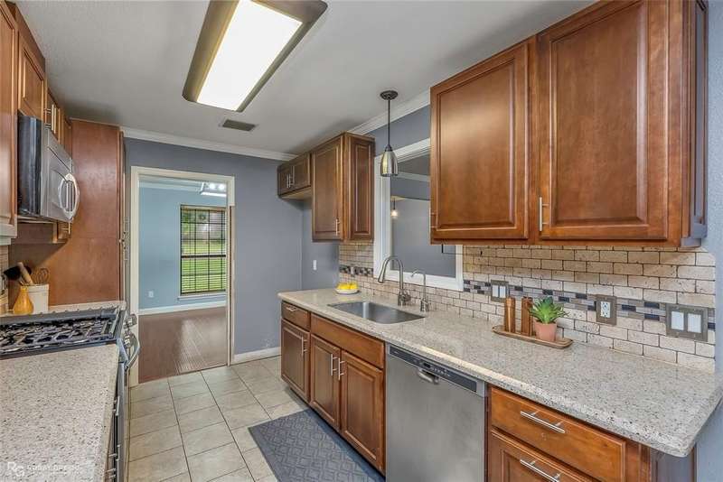 Welcome to this charming 3 bedroom, 2 bathroom home offering 1,815 square feet of comfortable living in the desirable New Castle Subdivision. From the moment you arrive, the inviting curb appeal, mature shade trees, and inviting front porch set the tone for a home that blends classic character with thoughtful updates. Step inside and discover a spacious living room anchored by a painted brick fireplace with a rustic wood mantel, perfect for cozy evenings. The rich wood floors, tray ceiling, and natural light create a warm and inviting space that flows seamlessly into the updated kitchen. Here, you’ll find granite countertops, custom cabinetry, modern backsplash, and stainless-steel appliances that make cooking a delight, with plenty of storage and counter space for entertaining or everyday meals. The large primary suite provides a peaceful retreat with plush carpet, tray ceiling, and direct access to a beautifully updated bathroom. The ensuite features dual vanities, an oversized walk-in shower with stylish tilework and pebble stone flooring, and ample storage. Additional bedrooms are generously sized, while the second bathroom includes a combination tub-shower and updated finishes. Outdoors, the fully fenced backyard offers exceptional space for recreation, gardening, or entertaining. A covered patio overlooks the expansive lawn, giving you plenty of room for gatherings, pets, or play. A detached storage unit and extended driveway add extra convenience. With modern updates, abundant natural light, and an excellent layout, this home is move-in ready and offers the perfect balance of style and function. Conveniently located near shopping, dining, and schools, this New Castle Subdivision property is a rare find you won’t want to miss. Call today for your private showing.